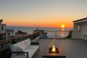 The apartment is located in the Kalamakiou area of Alimos, Greece. The address is Korae, 2, 174 55 Alimos. The property is situated in a residential zone, close to amenities and services. The area is known for its beautiful beaches and scenic views, making it an ideal location for those looking for a relaxing and luxurious lifestyle.