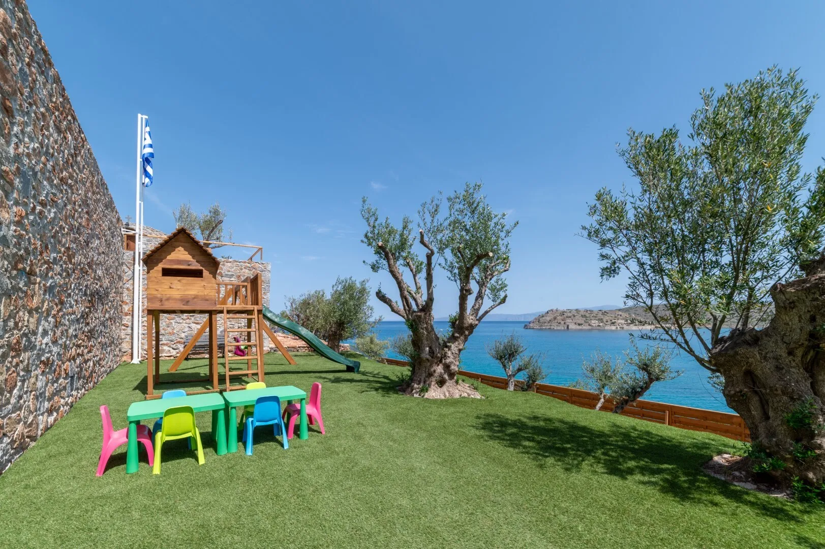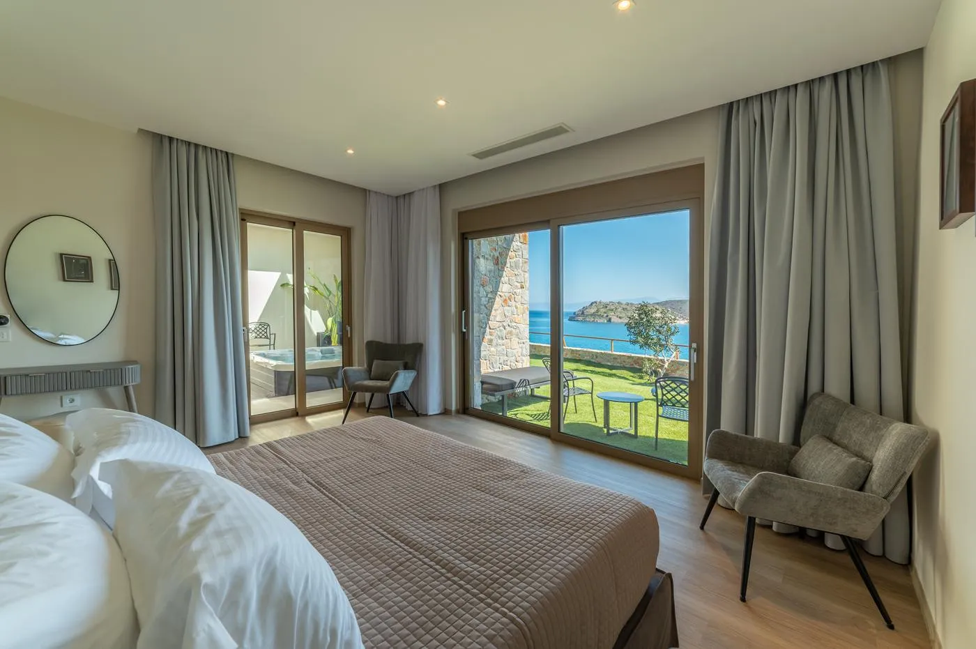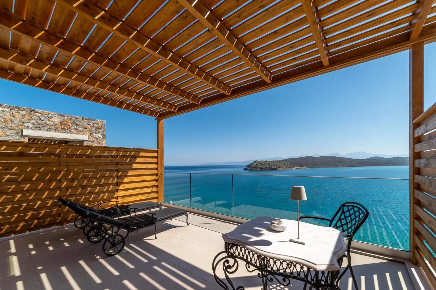 • The master suite features a private terrace overlooking the sea and Spinalonga