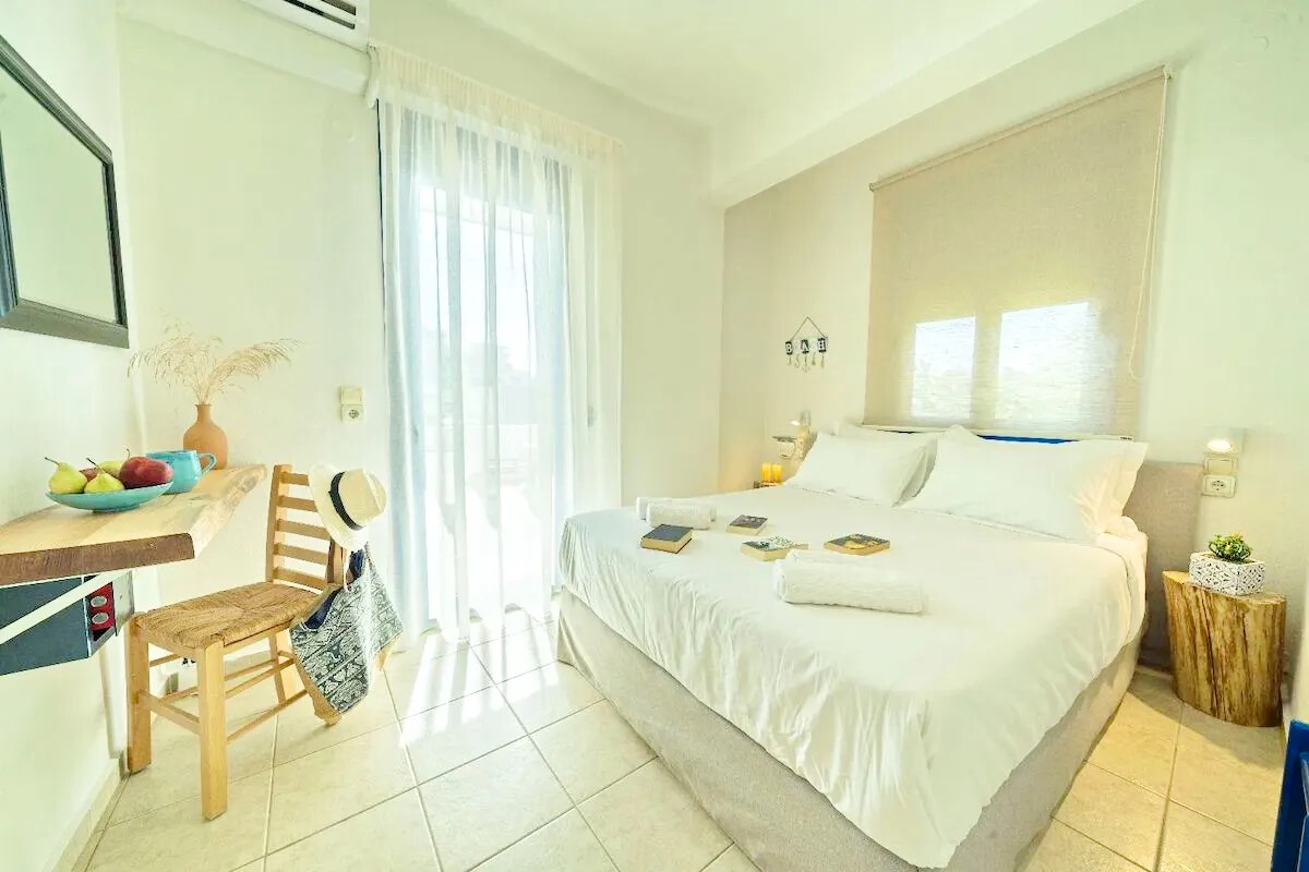 To the east, you’ll find the beaches of Krygia Vlychada, Tragopiastis, and Vouidomatos, while to the west lies the large and picturesque Ornio beach. For those with a boat, further exploration reveals hidden gems such as the beaches of Laridas, Gaidarou Pidos, and Alykes, as well as stunning caves with turquoise waters located between Tris Eklisies and the Holy Monastery of Koudoumas.