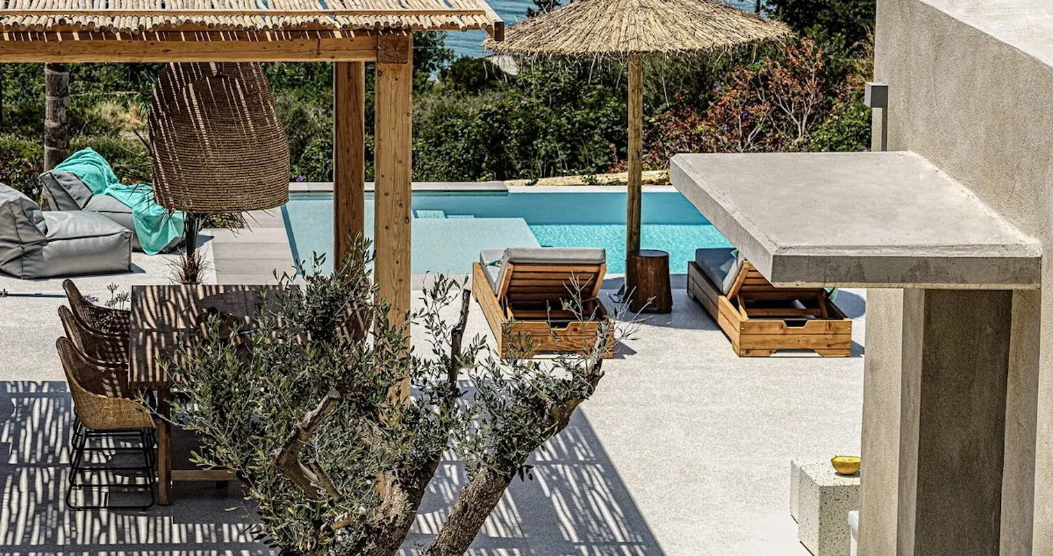 Situated 23km from Corfu Town and the airport, these stunning villas are nestled in the hills of Paramonas, offering spectacular panoramic sea views. The westerly-facing orientation provides breathtaking sunsets and an unparalleled living experience.