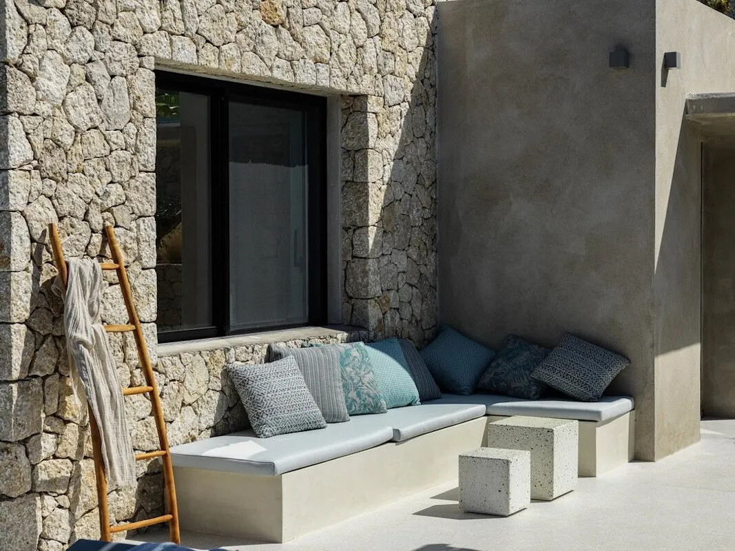 These luxury stone villas for sale in Corfu Island are built with a focus on sustainability, energy efficiency, and bioclimatic architecture. Natural materials were carefully selected to minimize energy consumption and support an eco-conscious lifestyle. The waste and water treatments are designed with environmental responsibility in mind.