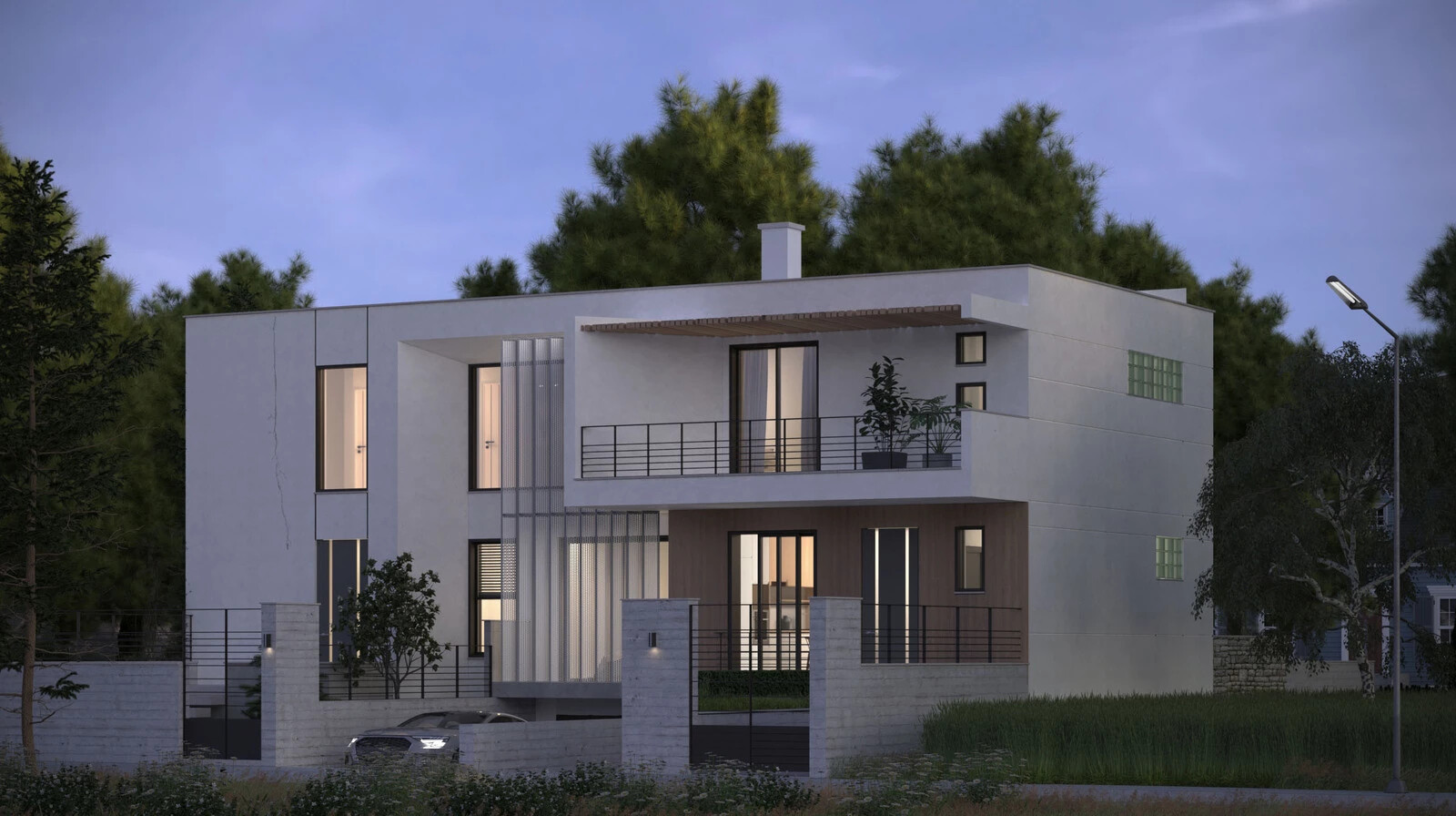 The second level, with an area of 63 sq.m. (1st floor), consists of two large bedrooms, a guest room, a spacious bathroom, and a 25 sq.m. terrace. All three levels are connected by a comfortable staircase.