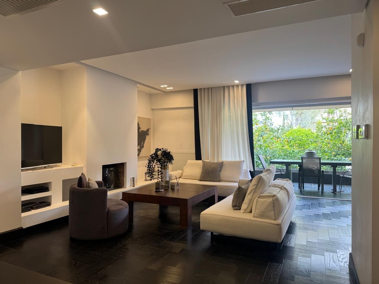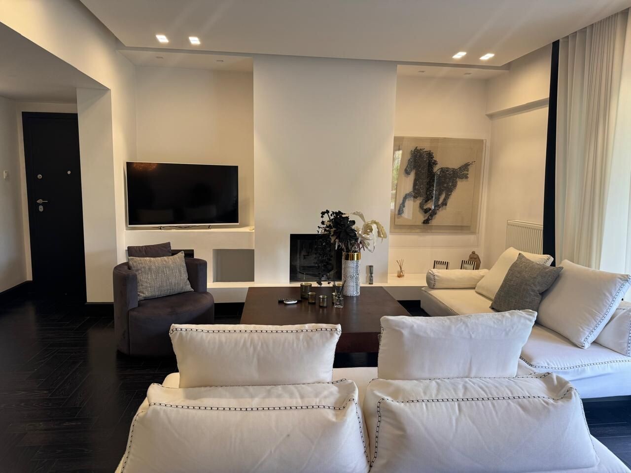 Luxury apartment for rent in the heart of Voula, Greece. This stunning 145 sqm property boasts a spacious living room, kitchen, two bedrooms, one bathroom, and a WC. The apartment features large verandas, a fireplace, security door, central air conditioning, alarm, cameras, Corian counters, and a bathtub. It is available both fully furnished and equipped, as well as unfurnished, catering to different tenant preferences.