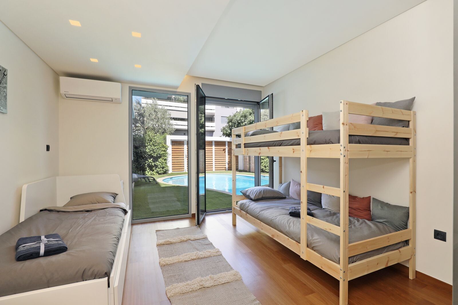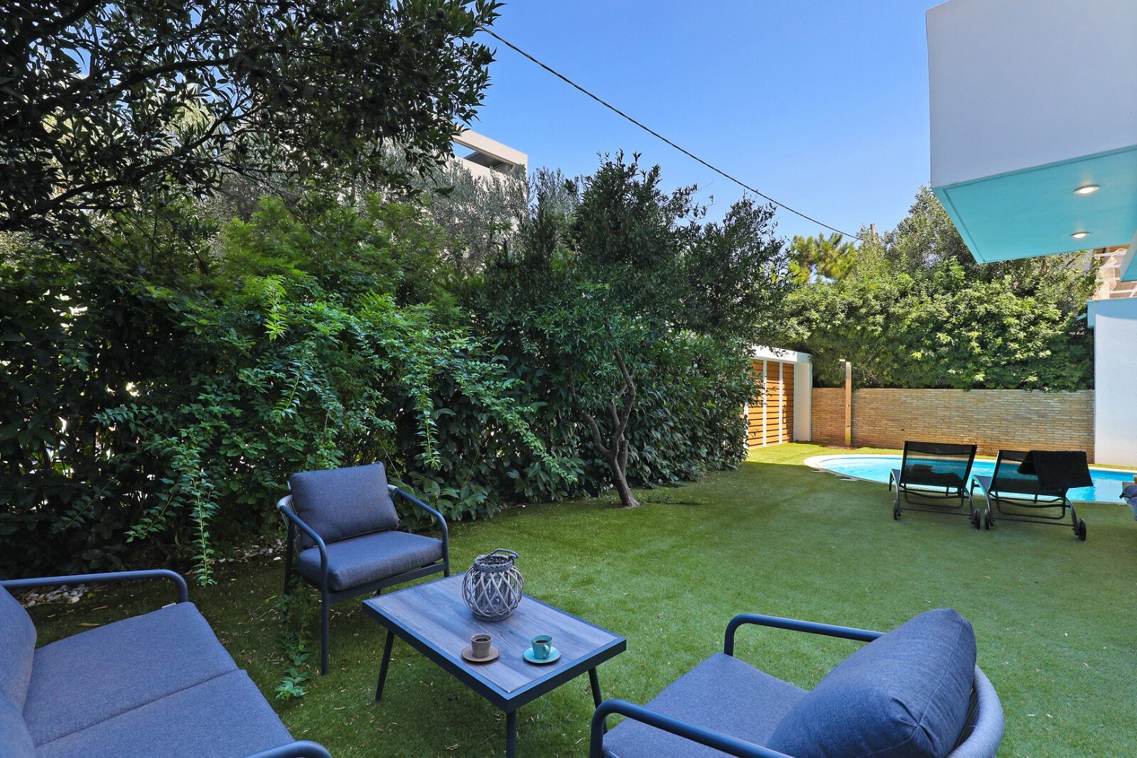 The apartment boasts 3 bedrooms, including 2 master bedrooms, as well as a private outdoor pool and garden, perfect for soaking up the sun and enjoying the Mediterranean climate. Additional features include underground parking, storage, and a WC. Built in 2005, this beautiful property is a rare find in the heart of Glyfada.