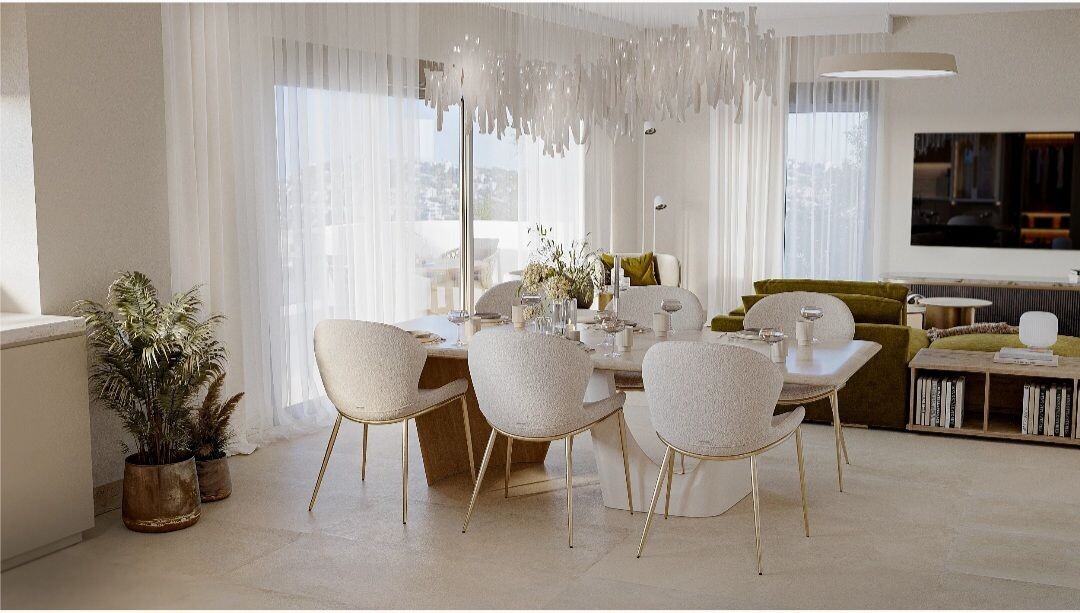 The main level features a spacious living room with large windows, a fully equipped open-plan kitchen, 3 comfortable bedrooms, 2 bathrooms, and 1 guest WC. The balconies offer stunning views, while the private rooftop terrace is a true oasis, designed for relaxation and entertainment. The rooftop features an outdoor lounge area, Jacuzzi, sun loungers, and a rooftop garden, all surrounded by 360° panoramic views of the sea and mountains.