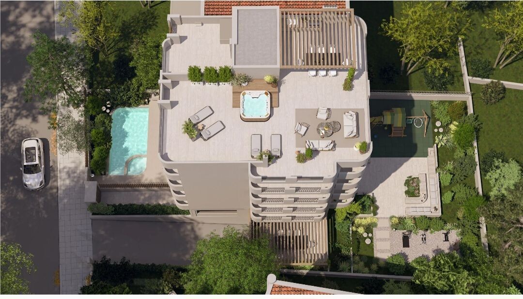 - Private rooftop terrace with outdoor lounge area, Jacuzzi, sun loungers, and rooftop garden
