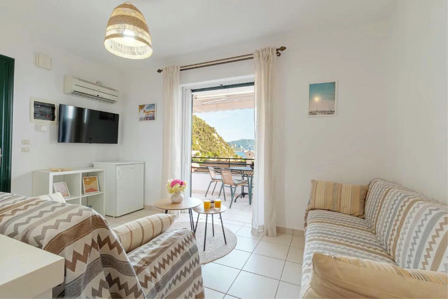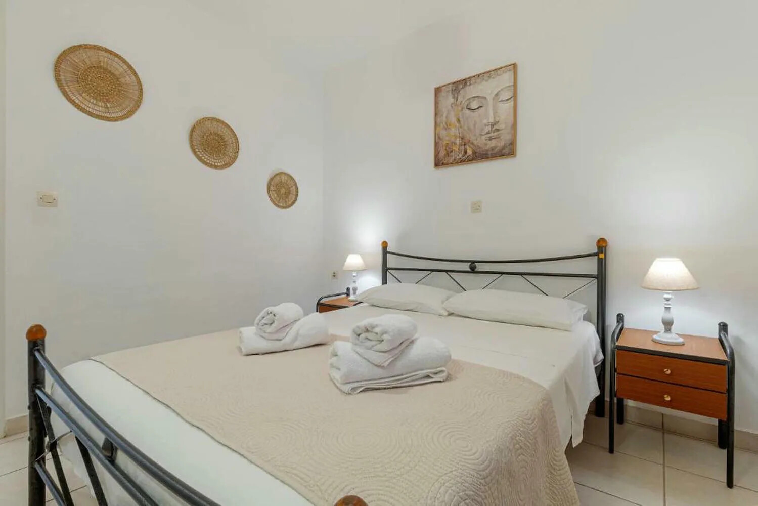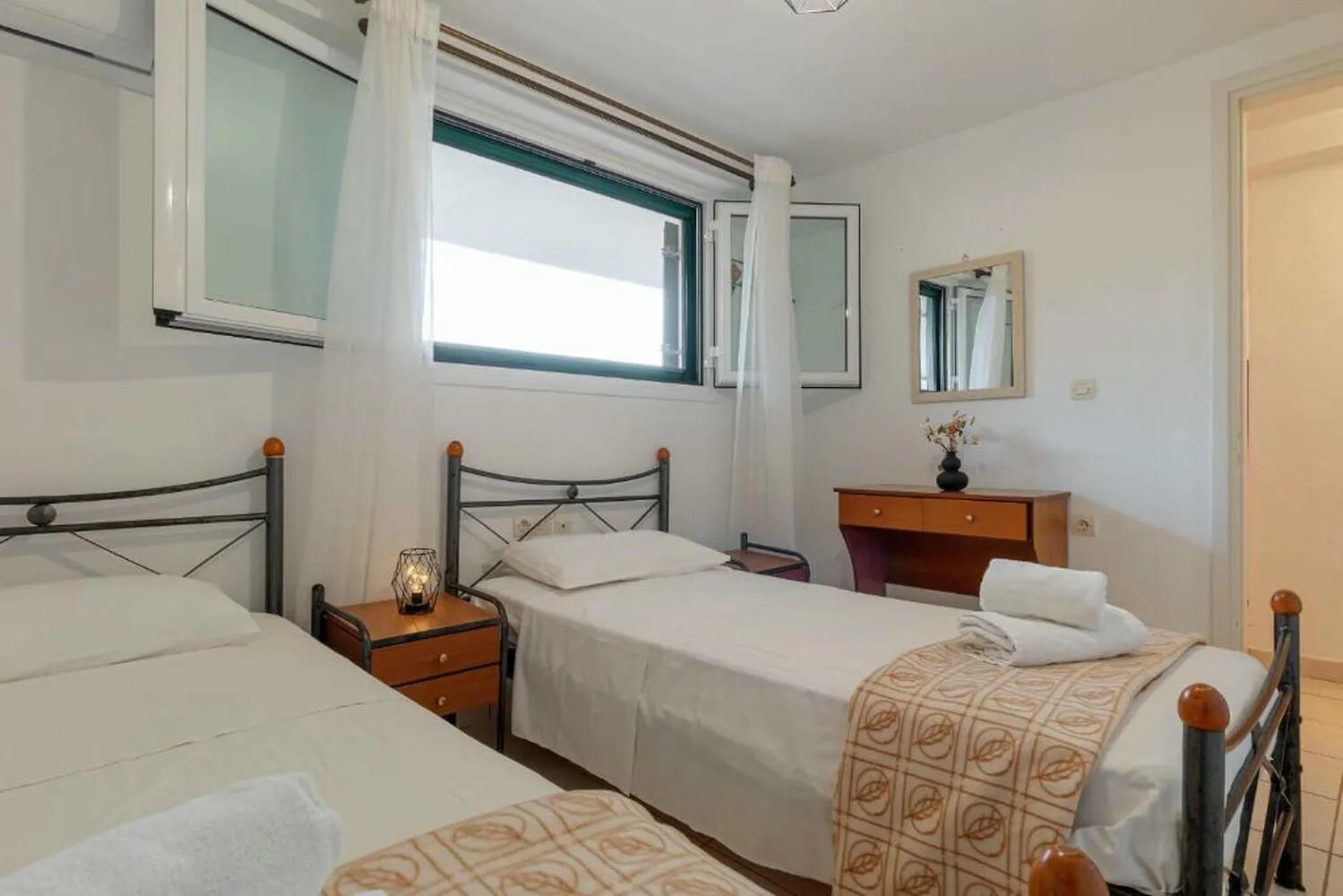 Built on the slope of a hill, which due to its position at the top, offers a wonderful view and guests can reach in just 5 minutes the golden sandy beach of Glyfada through a combination of paths and stairs, a descent of about 50 meters. The Home is a semi-detached apartment overlooking both the mountain behind and ahead the sea, as far as the eye can see.