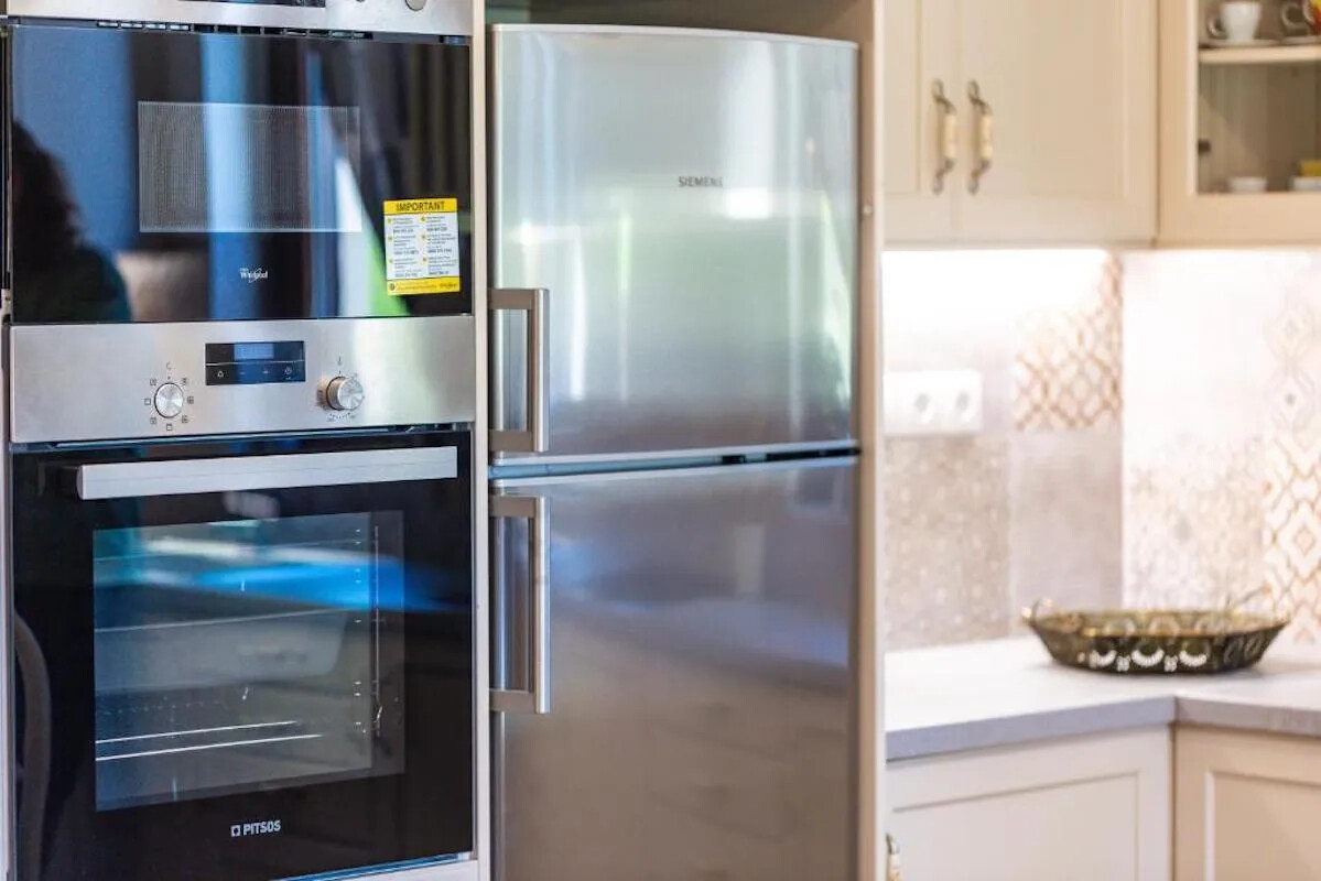 Upon entering the villa, one is immediately struck by its exquisite interior design. The open-plan living and kitchen area exudes sophistication, with an energy-efficient fireplace adorning the living space and retro wall tiles accentuating the kitchen. Carefully curated furnishings create an atmosphere of understated luxury, inviting residents and guests alike to unwind in style.
