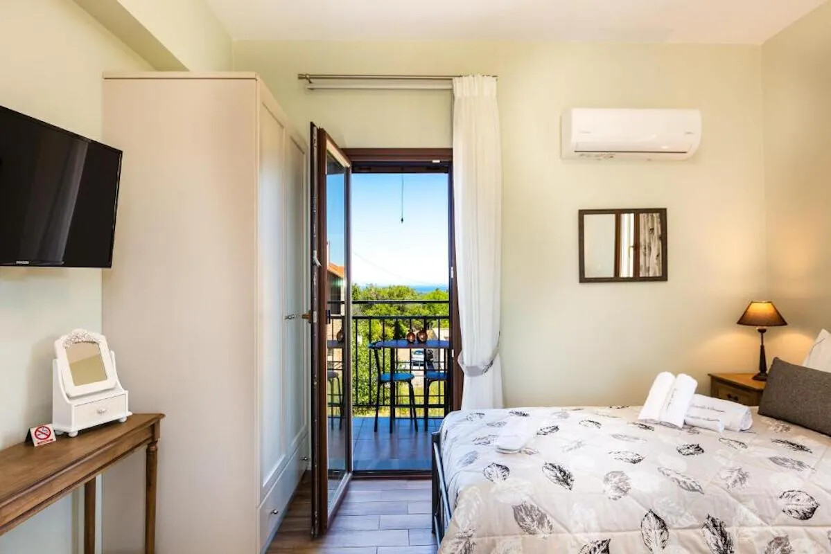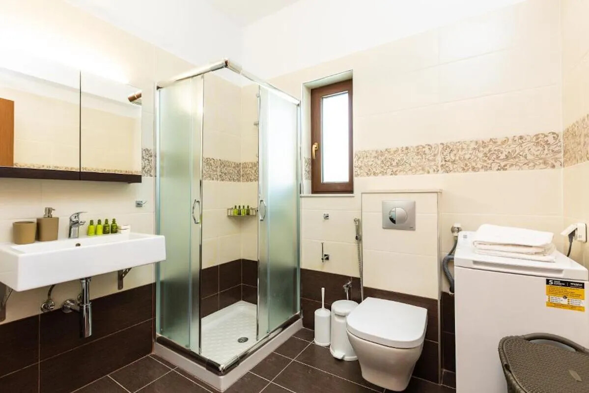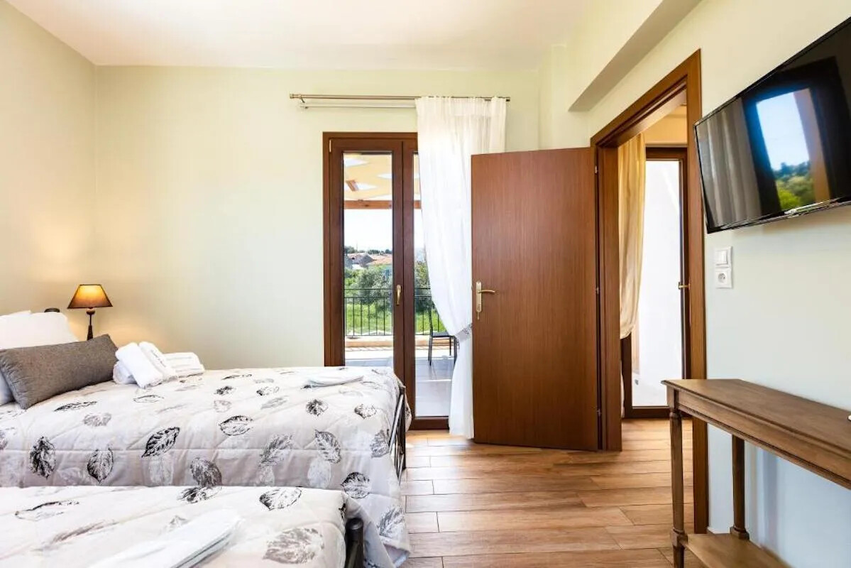 The villa features four spacious bedrooms, catering to the needs of a large family or discerning guests. With one bedroom located in the basement, another on the ground floor with wheelchair accessibility to the parking area and the pool, and two on the first floor, privacy and convenience are paramount. Each room is fully equipped and tastefully decorated, featuring wrought-iron beds and elegant wardrobes. The first-floor bedrooms also offer access to balconies that overlook the charming village and the serene countryside, providing breathtaking views of the surrounding landscape.