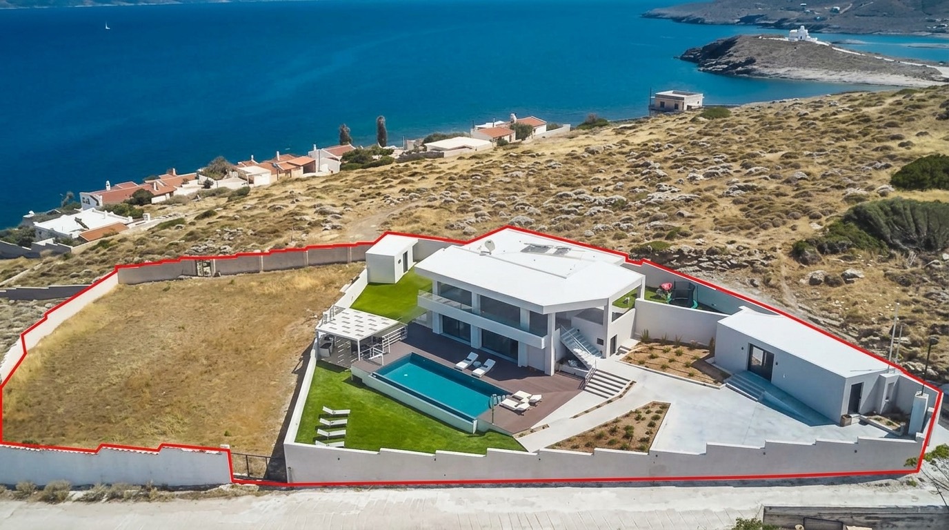 This exquisite villa in Periyali, Keratea, offers breathtaking 180° sea views, luxurious modern amenities, and a prime coastal location just 100 meters from the beach. Nestled on an elevated plot spanning approximately 2 acres, this stunning property provides the perfect blend of privacy, comfort, and accessibility.