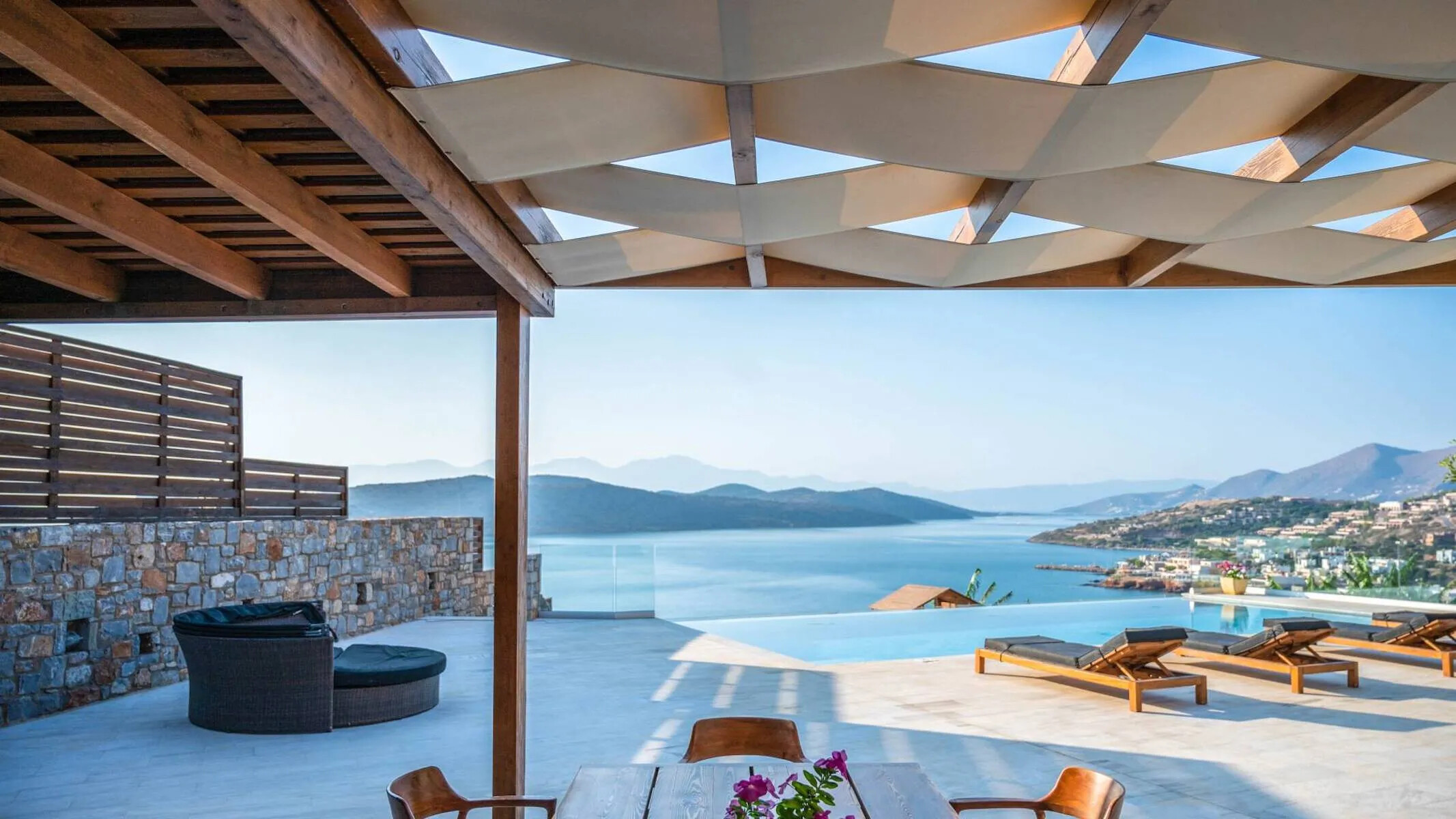 Uninterrupted views toward the island of Spinalonga and the Elounda coastline