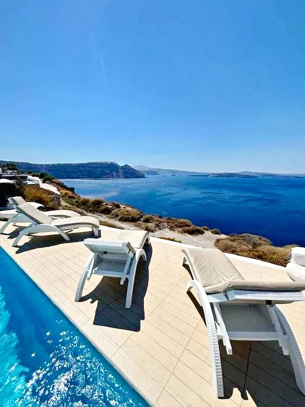 This villa is perfect for those seeking a luxurious and peaceful retreat in Santorini, offering both stunning views and convenient access to the charming village of Oia.