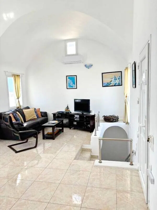 The villa is conveniently located along the traditional Fira-Oia walking path and is only 600 meters from the beginning of the pedestrian street that leads through the center of Oia. The property is easily accessible with minimal steps, and there is car parking just 15 meters from the house.
