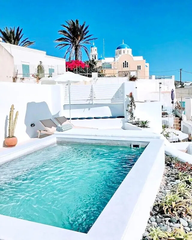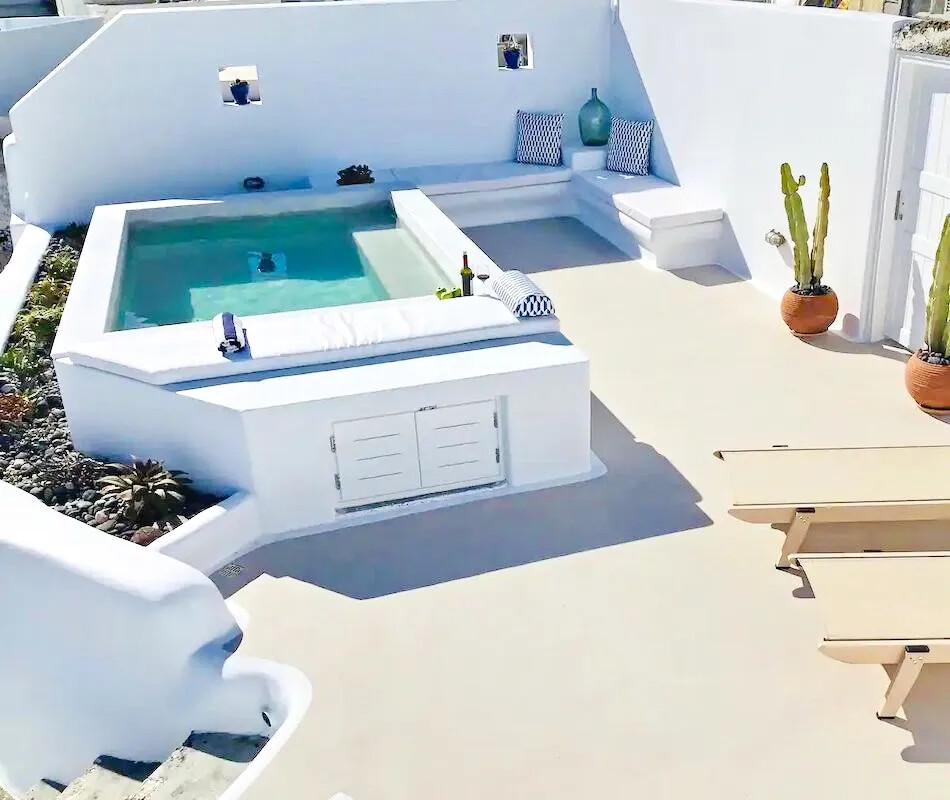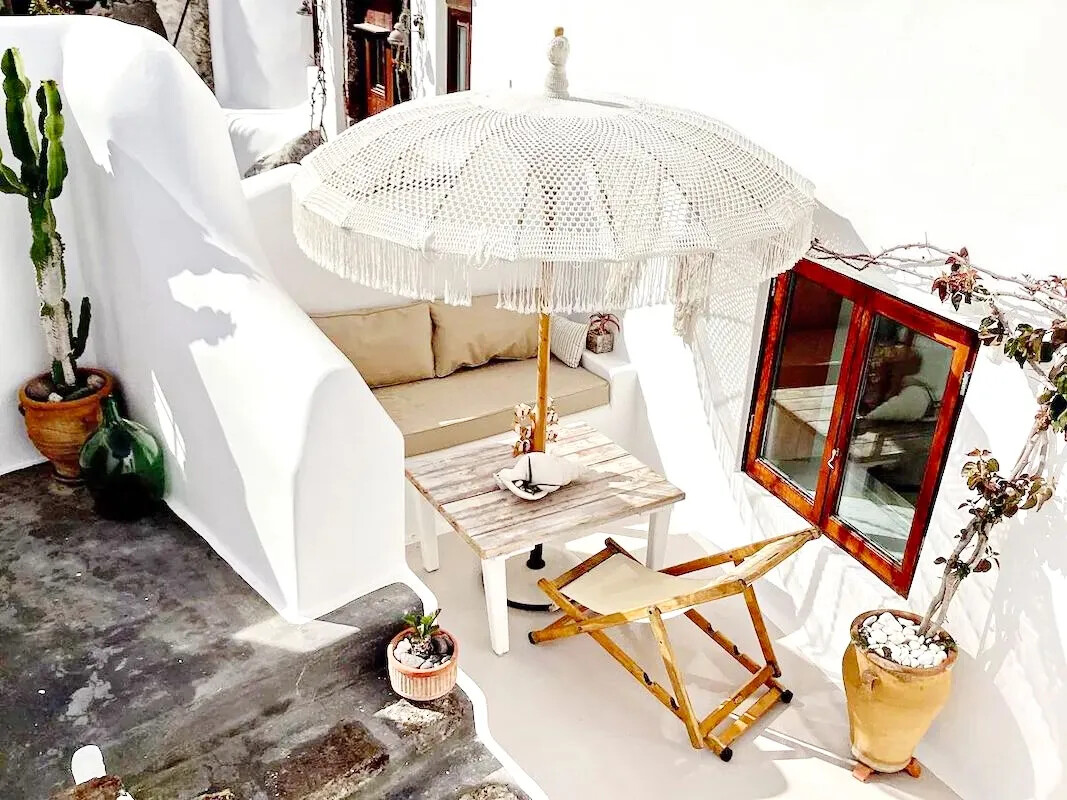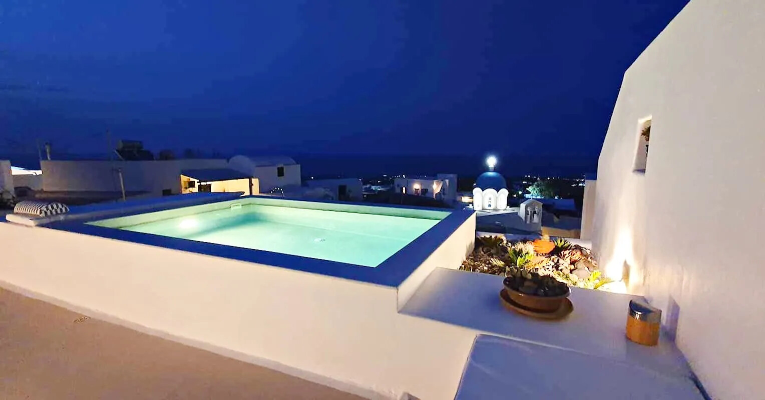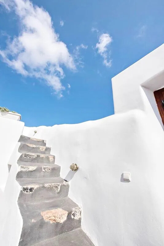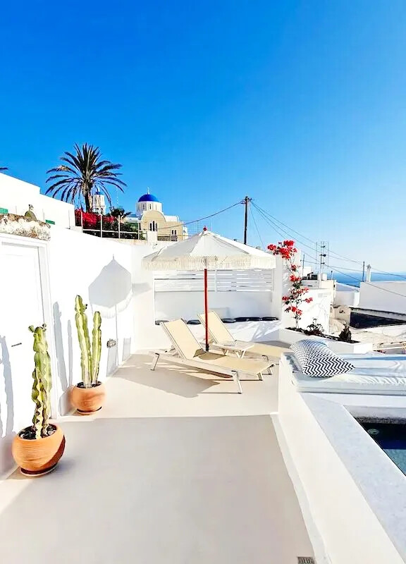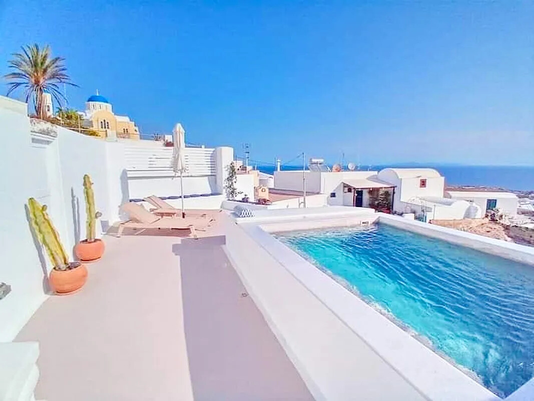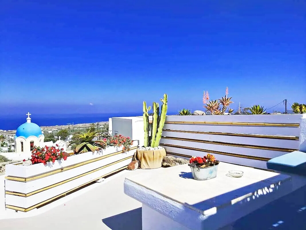 - Just 7 minutes’ walk from the bustling square of Fira, guests have easy access to fine dining, eclectic nightlife, and the famous caldera views.