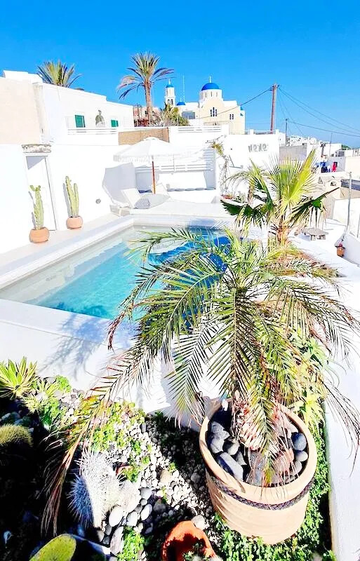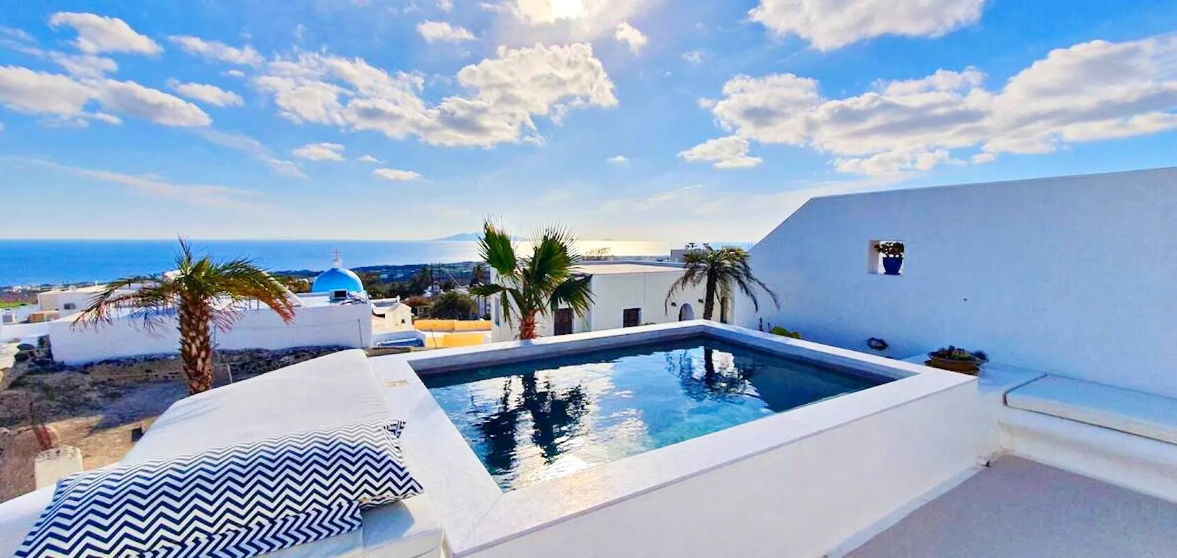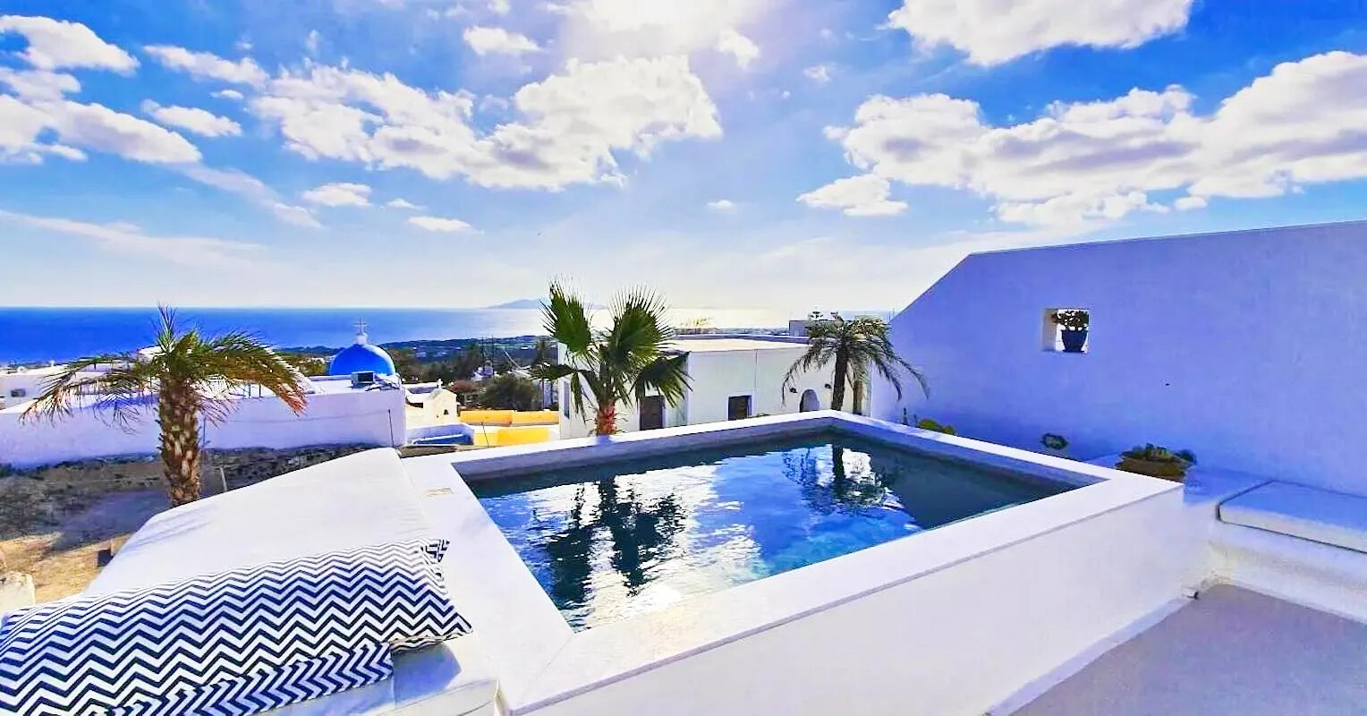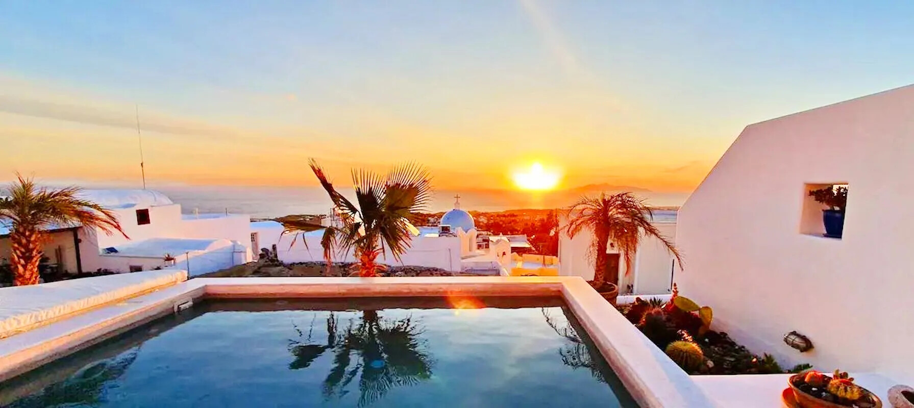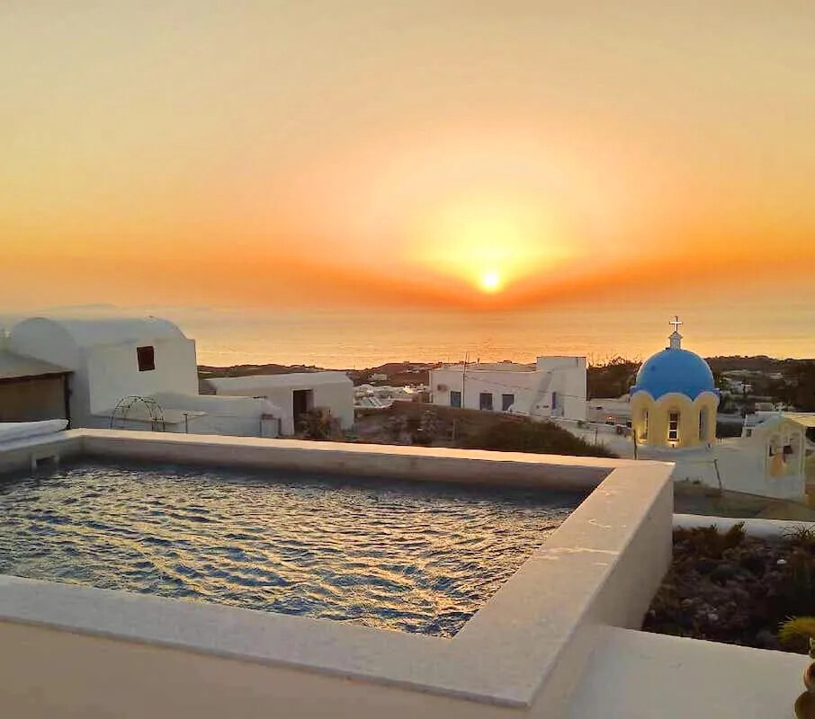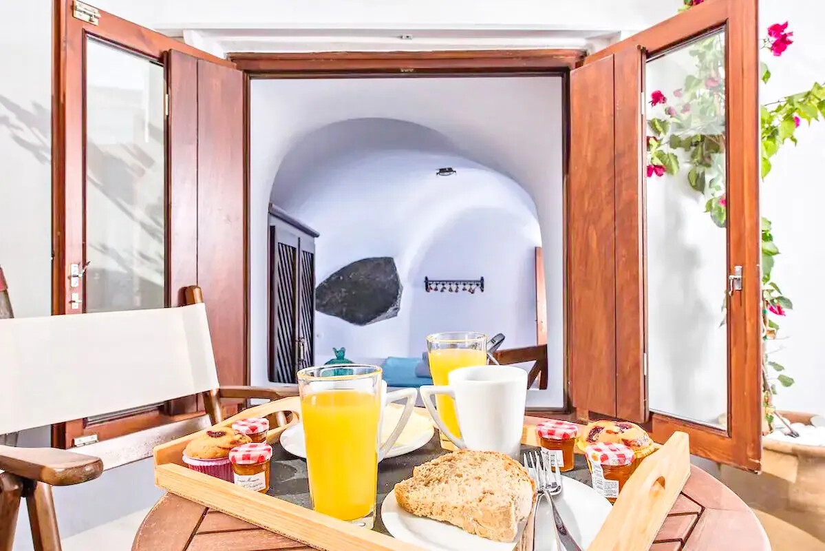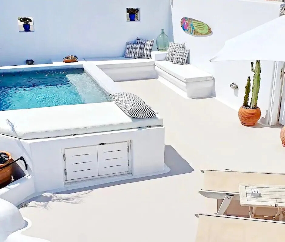 - Just 7 minutes’ walk from the bustling square of Fira, guests have easy access to fine dining, eclectic nightlife, and the famous caldera views.