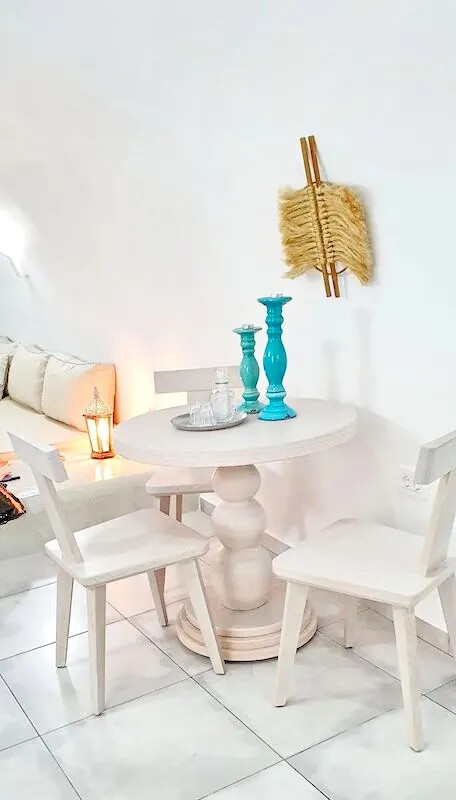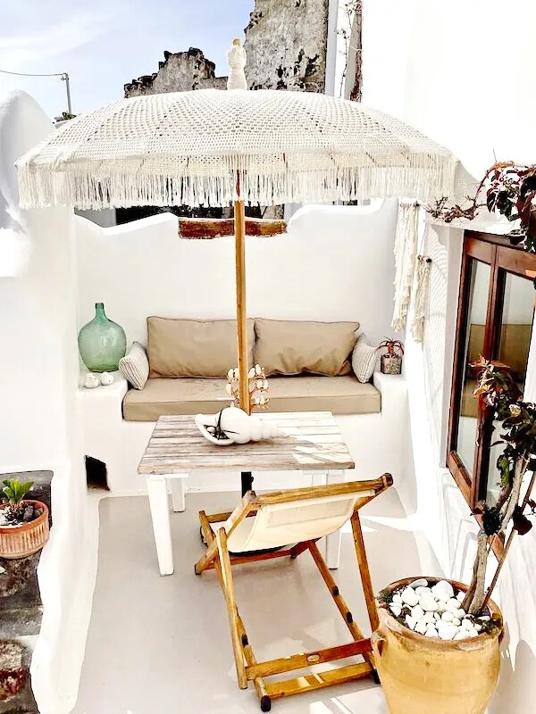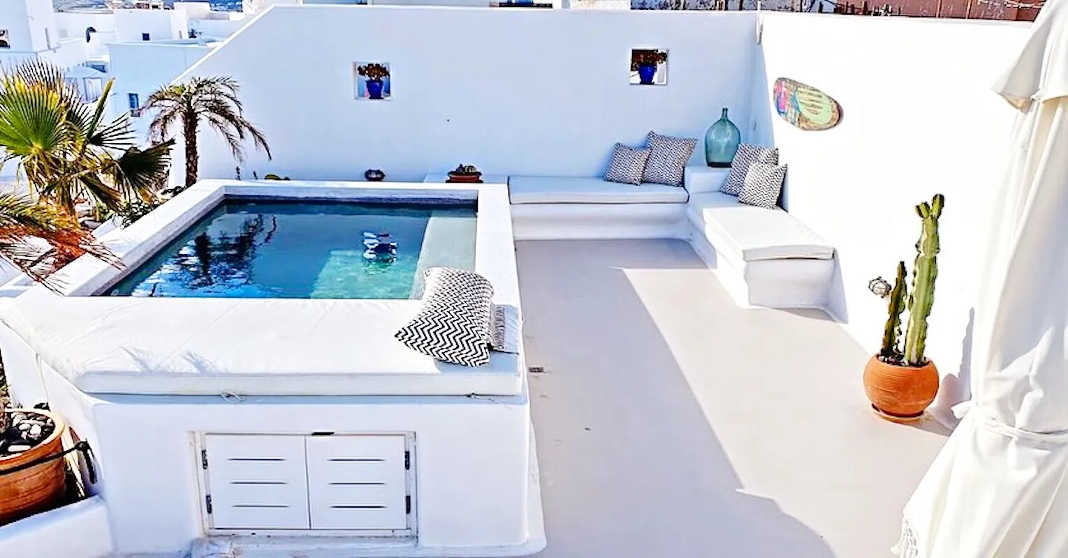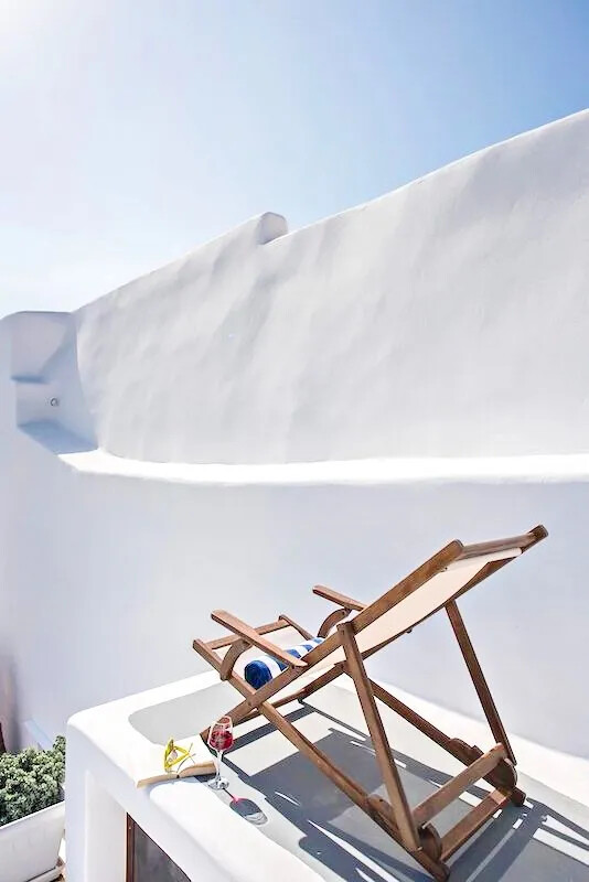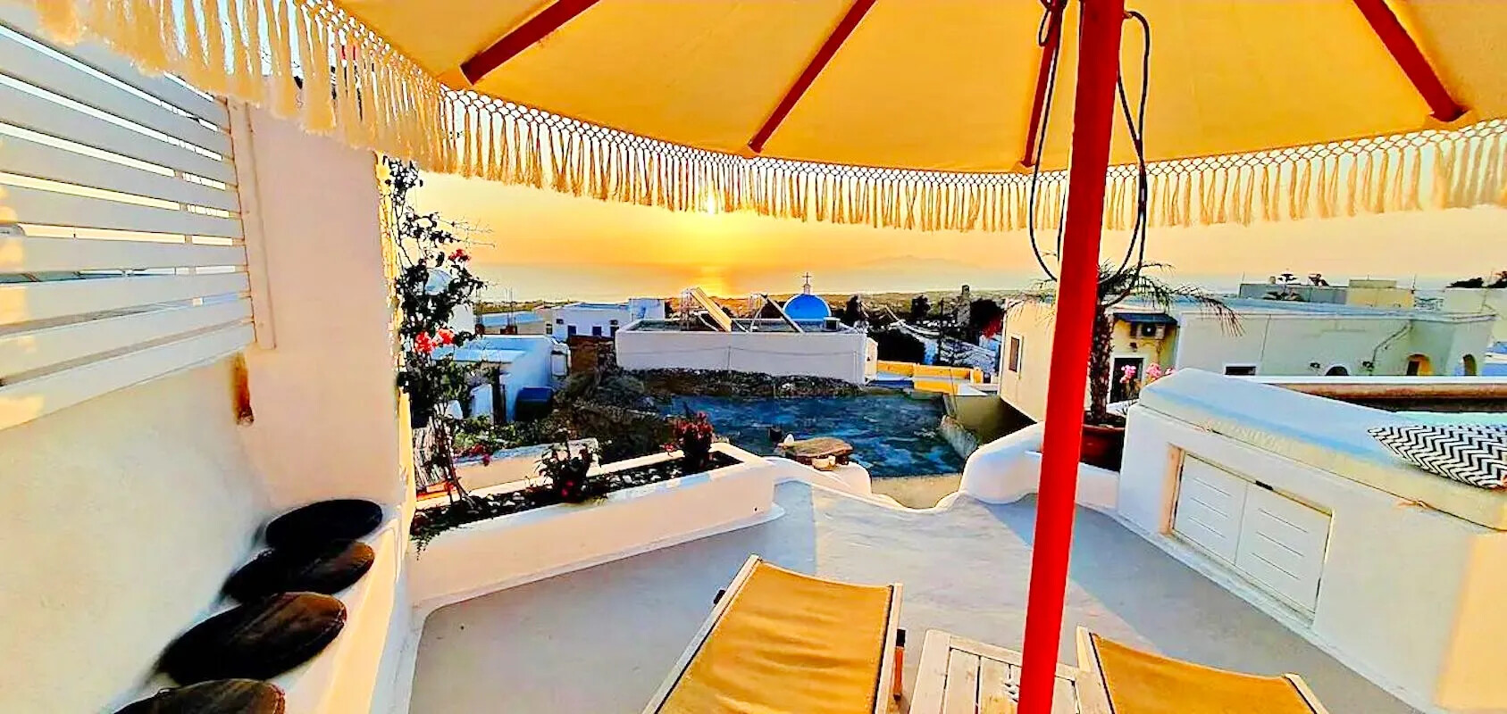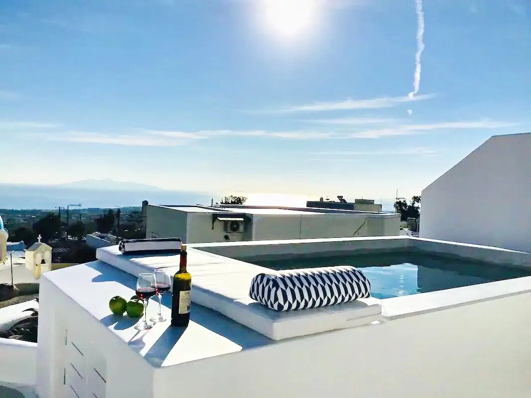 One of the highlights of this property is the outdoor hydromassage on the roof, where guests can relax and unwind while enjoying breathtaking views of the Aegean Sea. On clear days, neighboring islands such as Anafi and Amorgos are visible, and early risers can witness spectacular sunrises over the horizon.