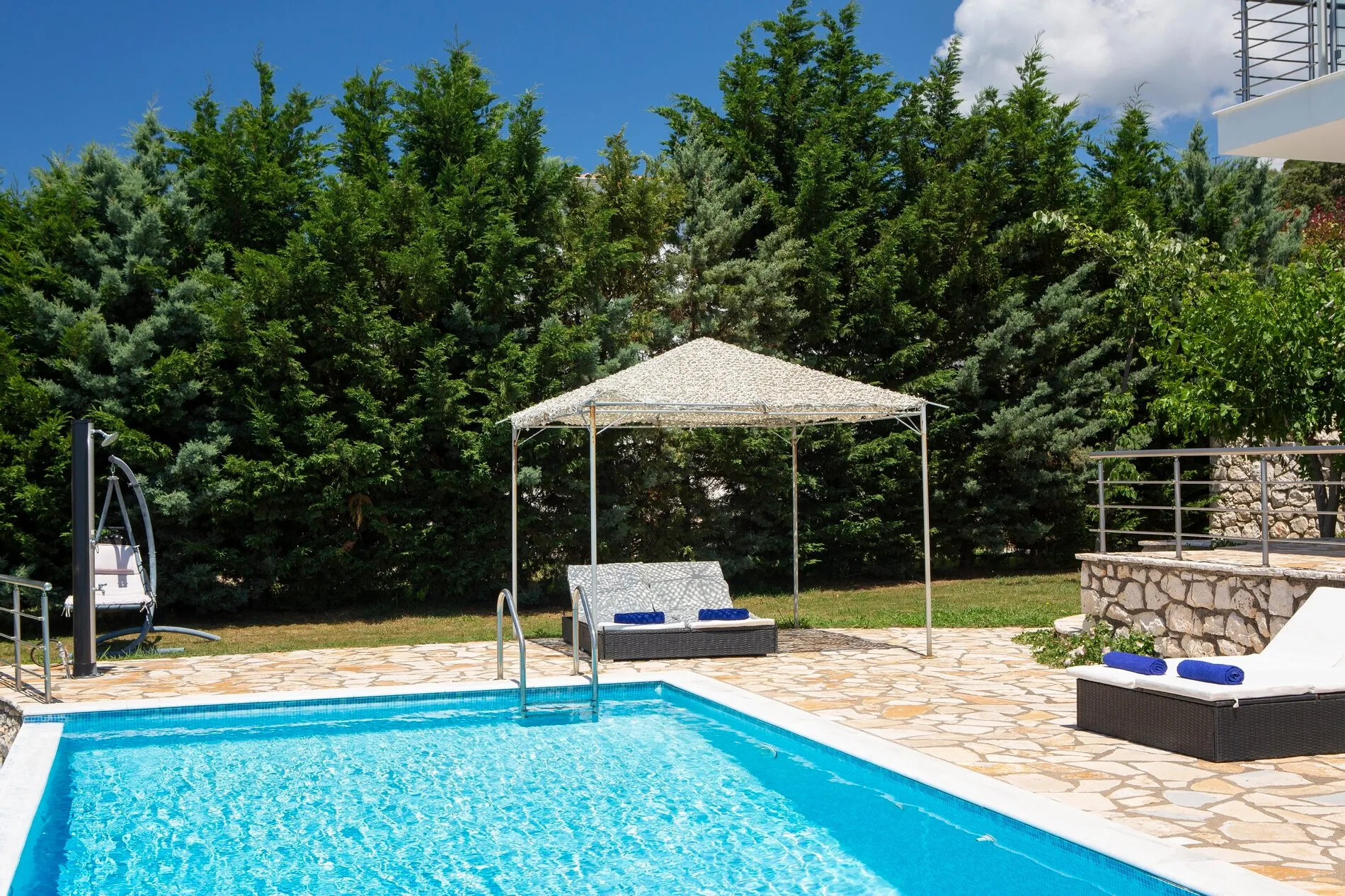 - Outdoor Amenities: The outdoor space is equipped with four independent swimming pools, perfect for relaxation and leisure. Additionally, there are four BBQs, exterior sitting and dining areas, and parking spaces for added convenience.