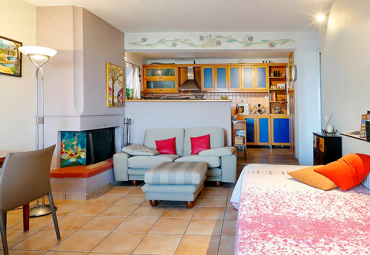 Explore this charming 61 sq.m detached house situated on a 280 sq.m plot with exceptional panoramic views. Built to high standards, it features a living room with a fireplace, a kitchen, one bedroom, and a bathroom.