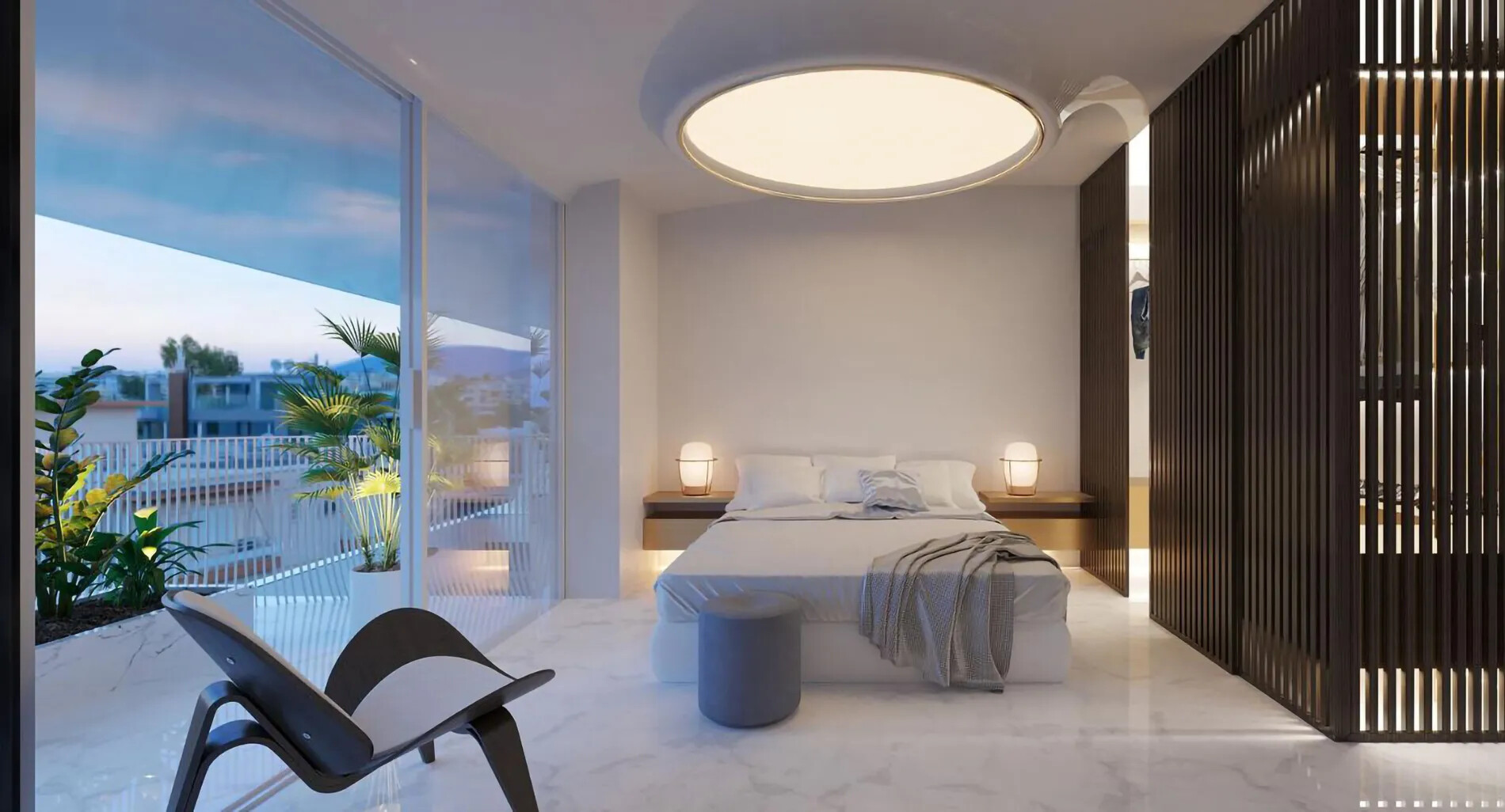 Ascending to the 1st floor, you’ll discover 2 more bedrooms, each boasting its own en-suite bathroom, walk-in closet, and charming balconies that offer captivating urban vistas.