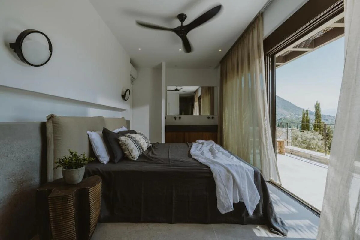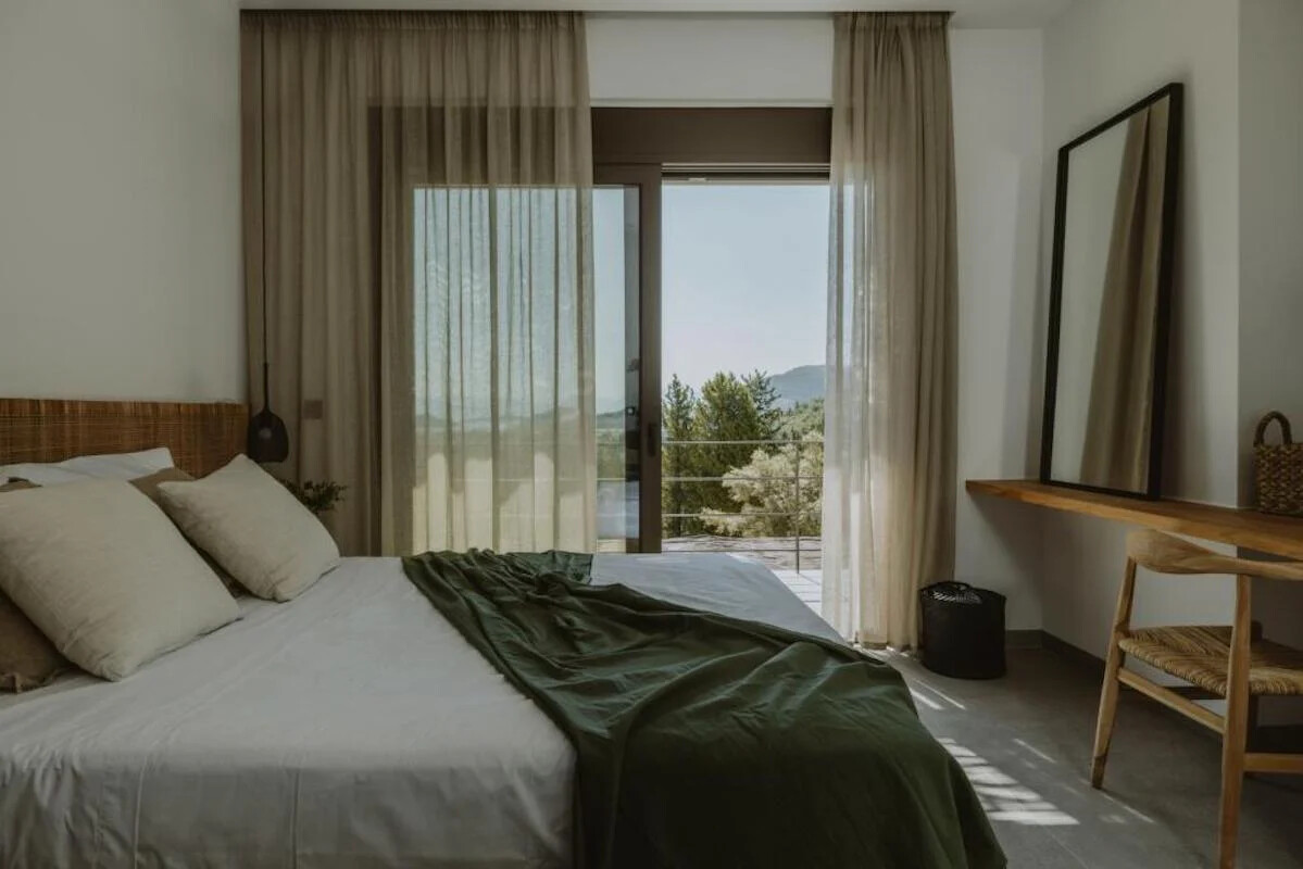 The master bedroom on the first floor boasts a magnificent terrace where the Ionian Sea stretches before your eyes, and the serene natural surroundings embrace you.