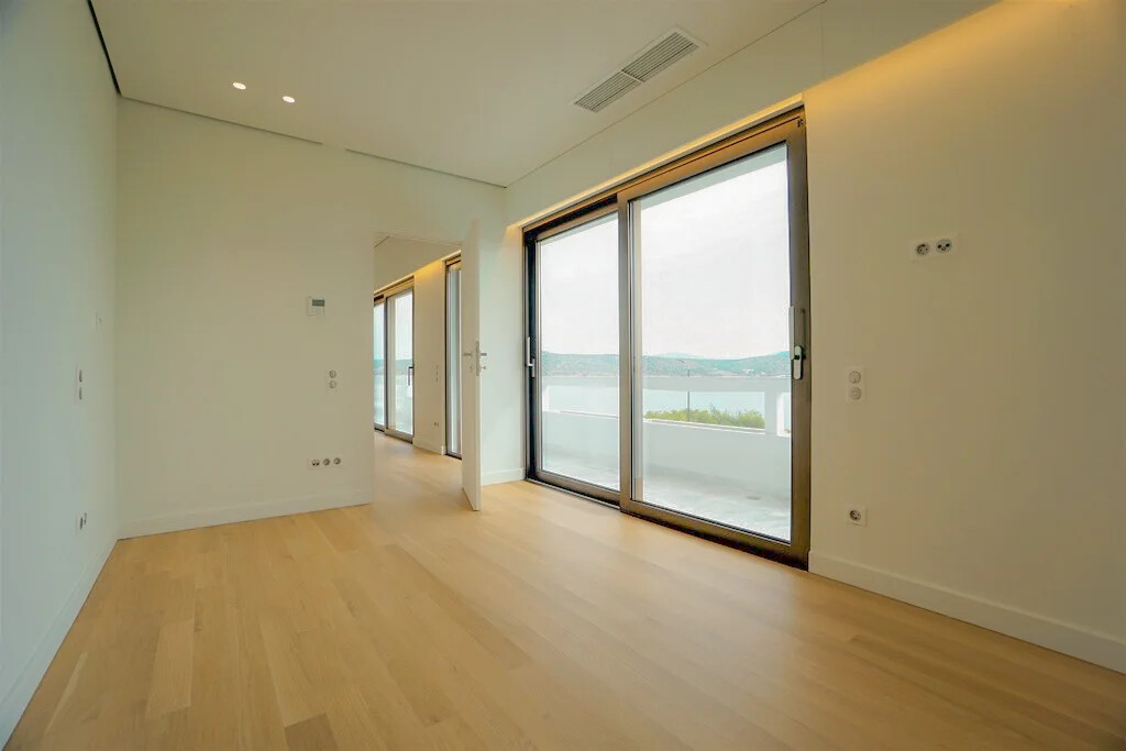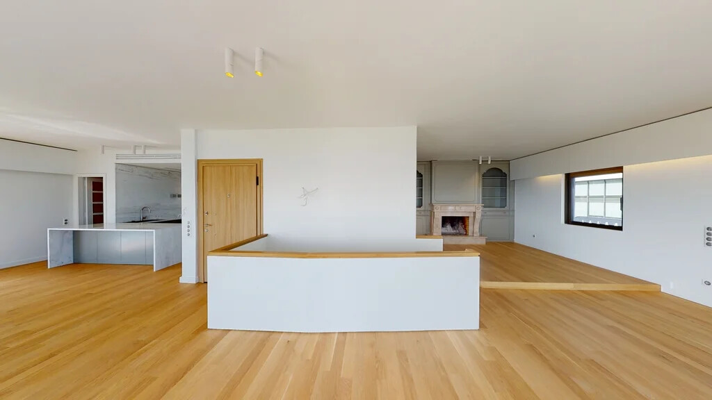 The entrance to the unit, located on the 4th floor, welcomes you into a comfortable living room adorned with a cozy fireplace and an open-plan kitchen, all enjoying panoramic sea vistas. Additionally, a convenient W.C. and access to a spacious veranda complete this level, providing the perfect setting for outdoor relaxation and entertaining.