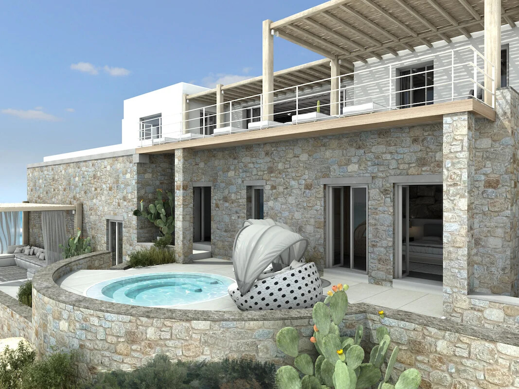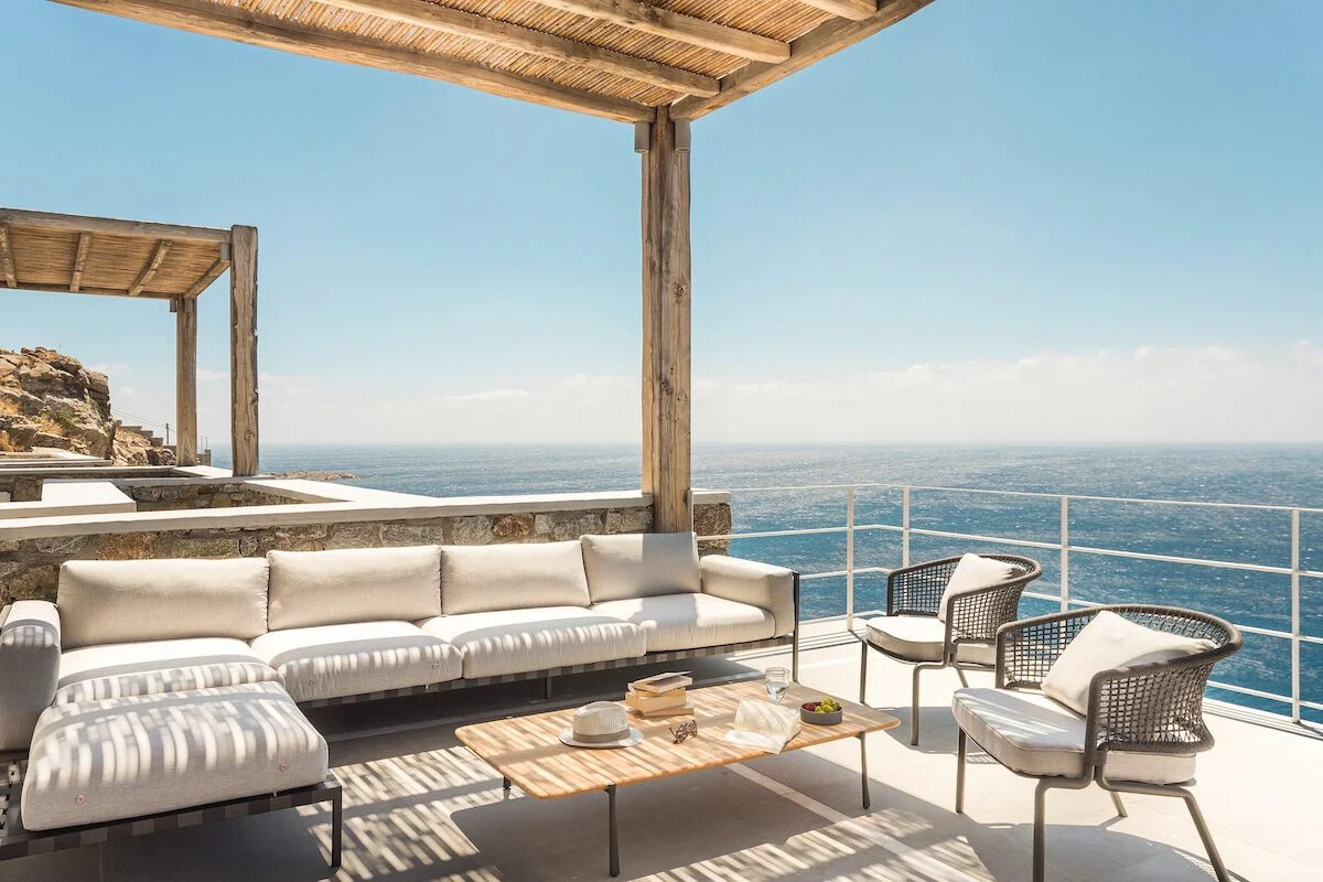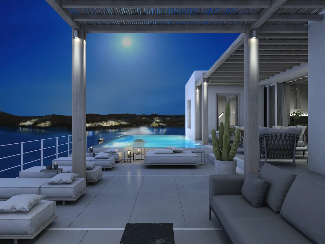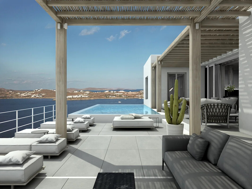 Nestled upon a secluded peninsula, offers an endless vista of the shimmering sea and the unparalleled luxury of absolute privacy. With a backdrop as captivating as this, you’ll find it effortless to while away the entire day soaking in the mesmerizing ambiance on the terrace, reclining by the pool, and relishing dinner under a canopy of stars. You’ll be entranced by the serene surroundings and delighted by the proximity to illustrious beaches, such as Psarou Beach, which beckons celebrities and jet-setters from across the globe with its crystalline waters and vibrant lifestyle.