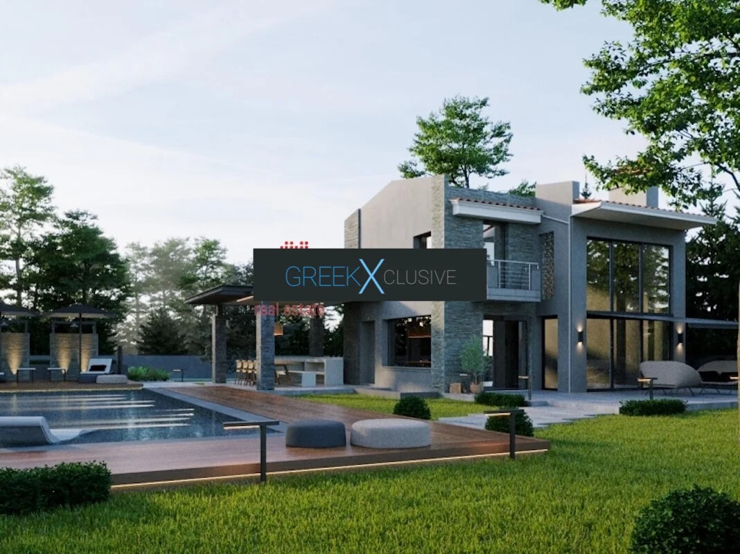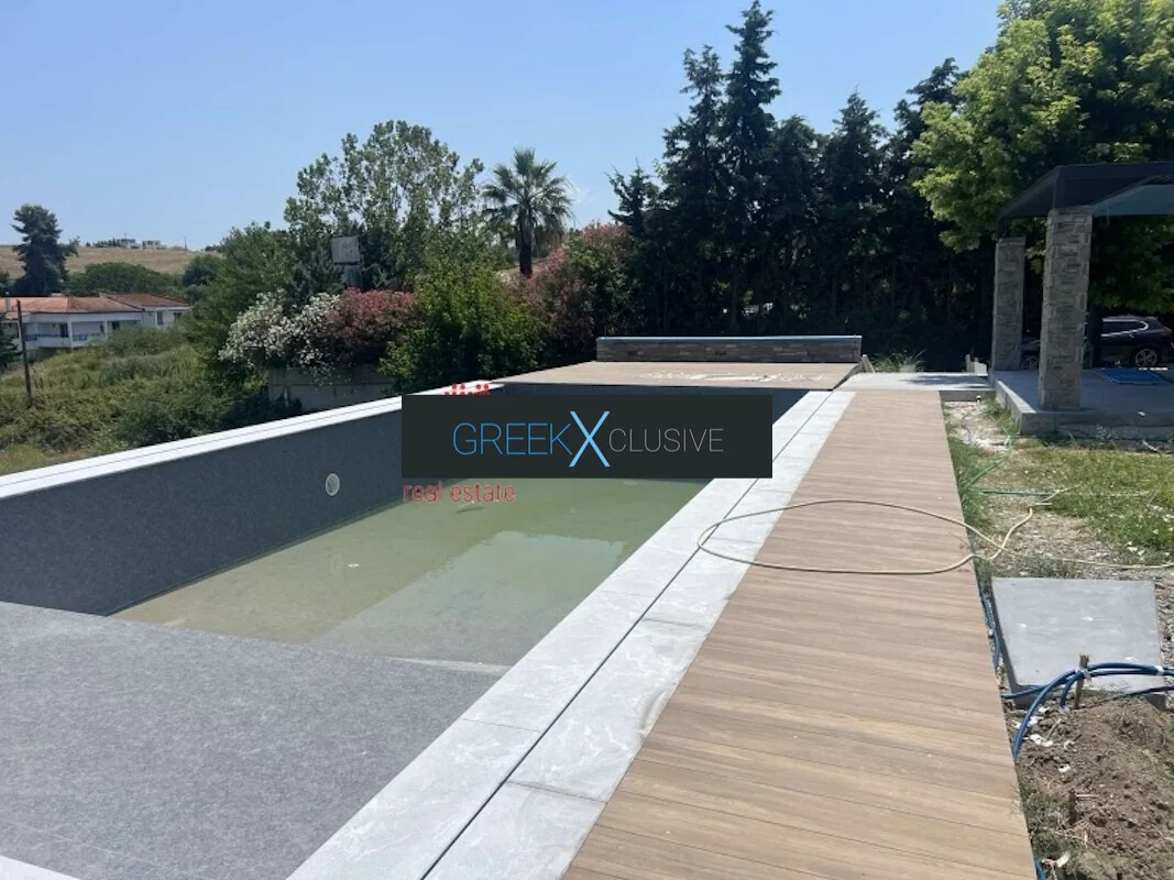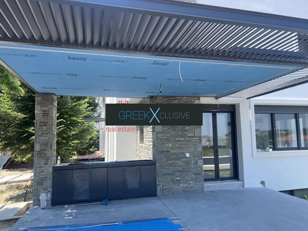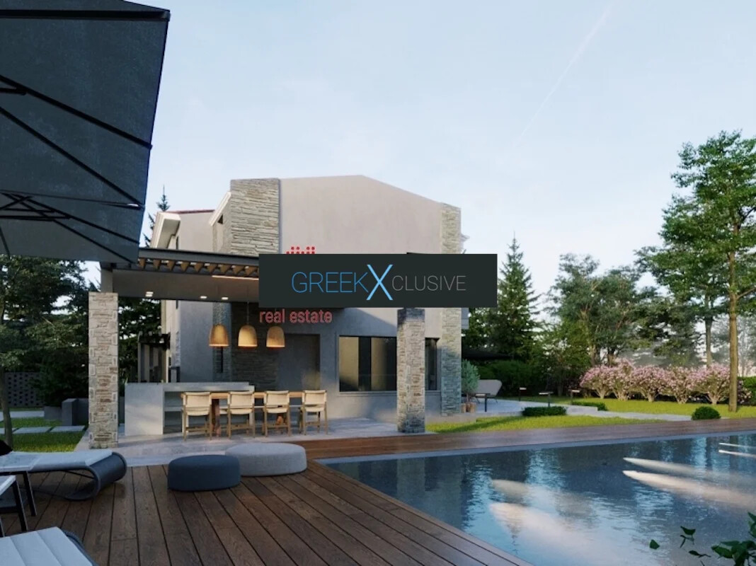 Step into a world of opulence surrounded by sprawling gardens of 1000 sq.m., featuring a large swimming pool, a sun lounge deck area, and a pergola-covered entertaining space. The villa’s attention to detail and high-quality materials showcase its commitment to luxury living.