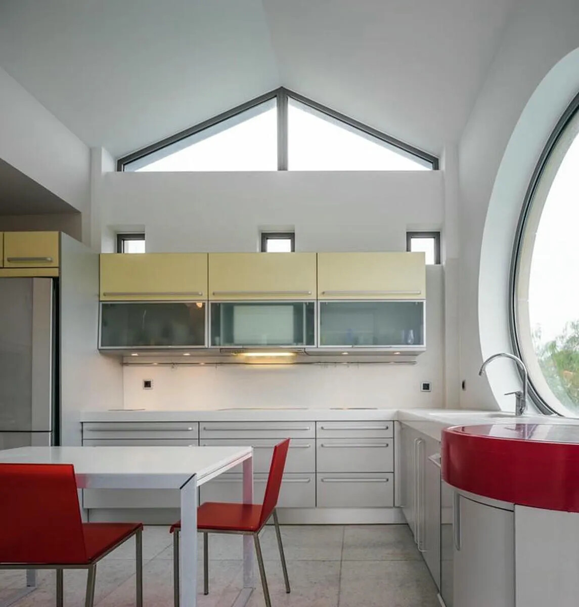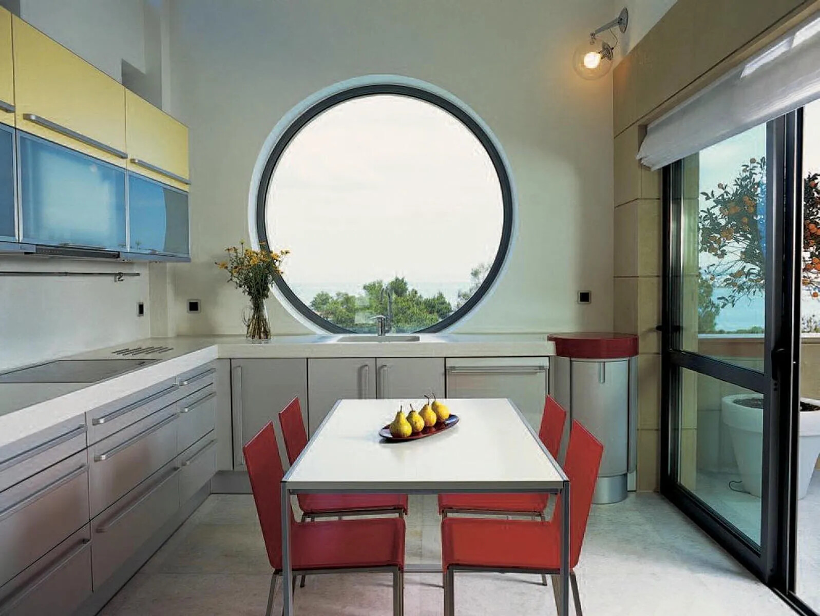 Kitchen: Fully equipped with Gaggenau appliances, including a refrigerator, oven, ceramic hobs, and a dishwasher, providing a stunning view of the pool