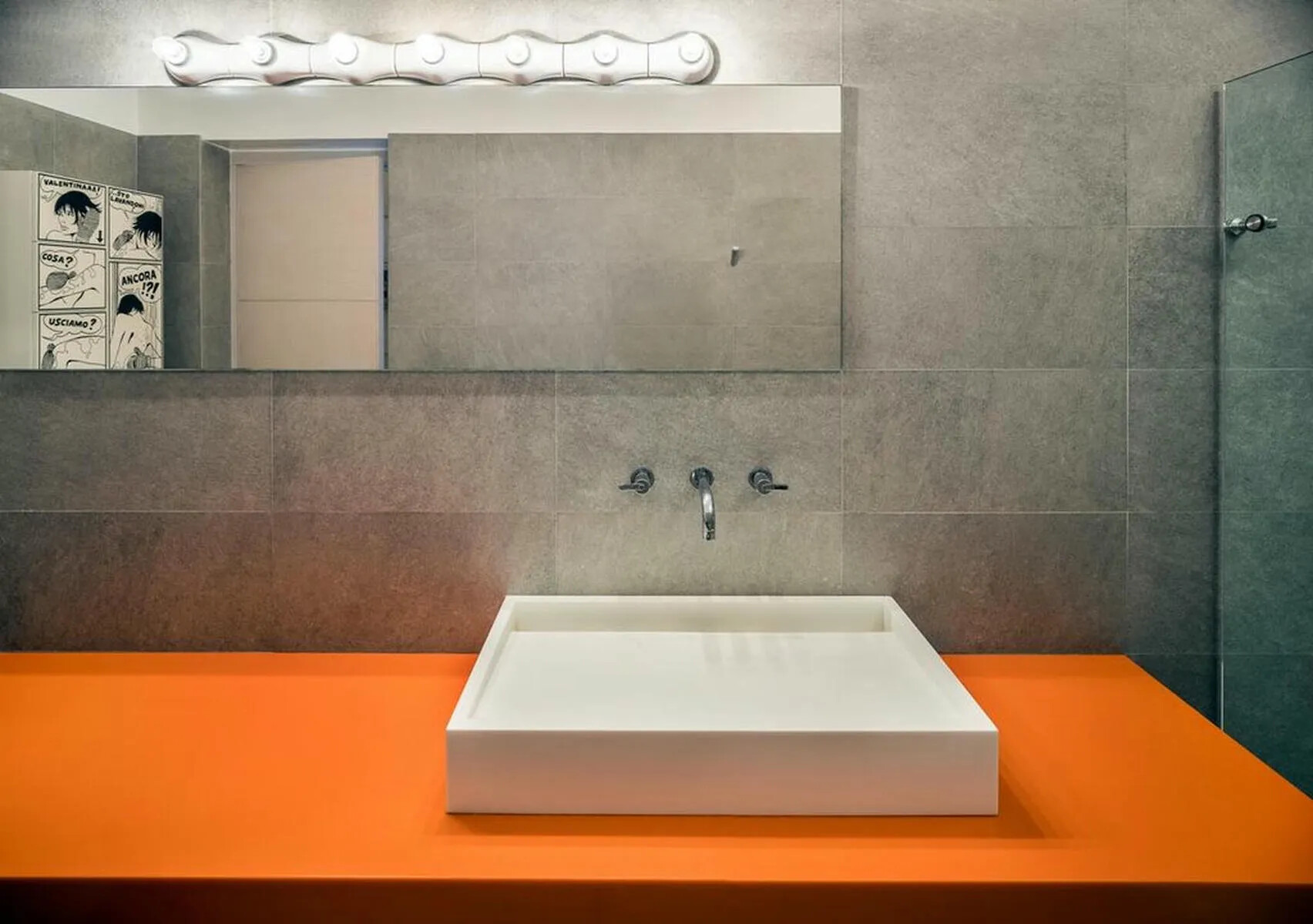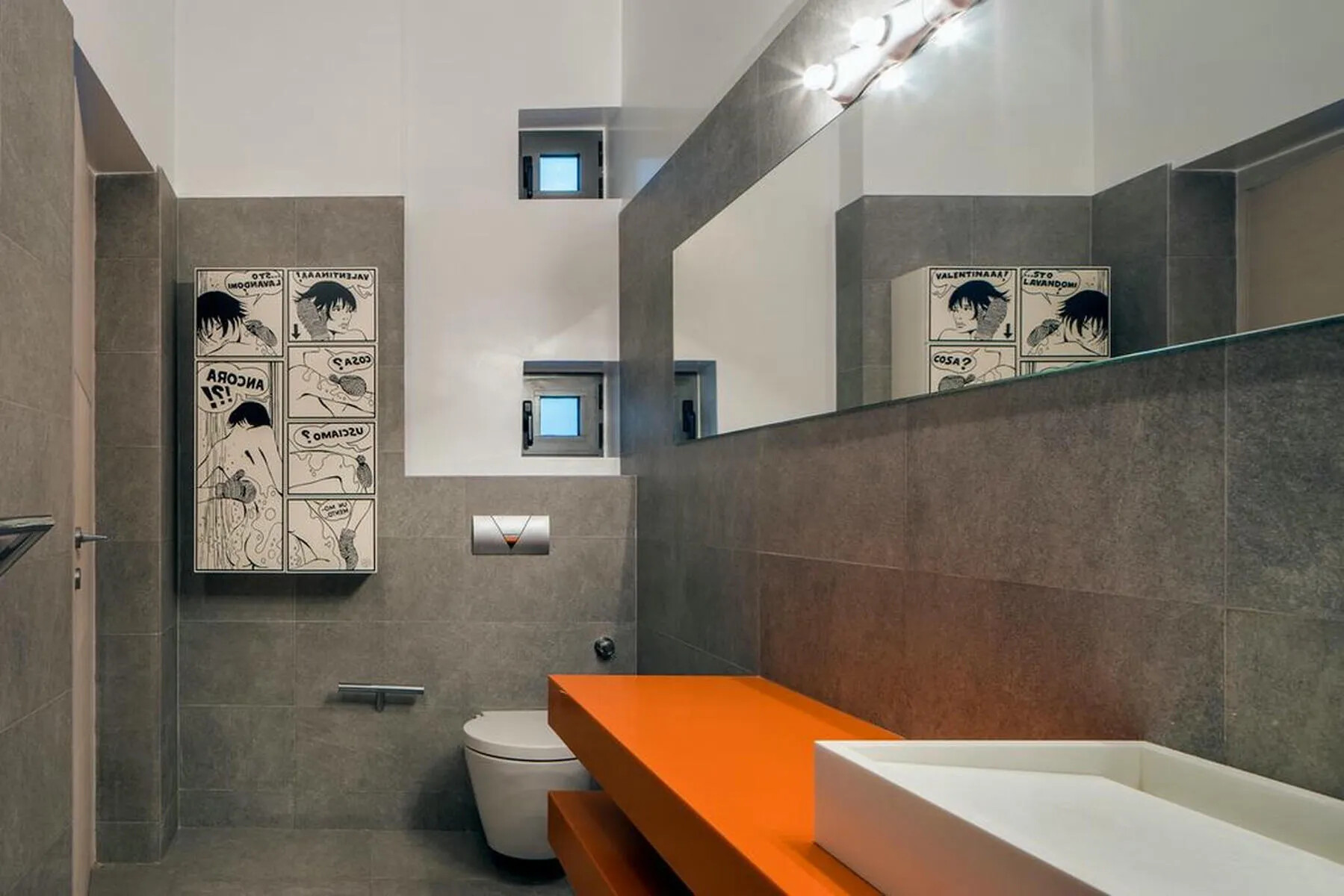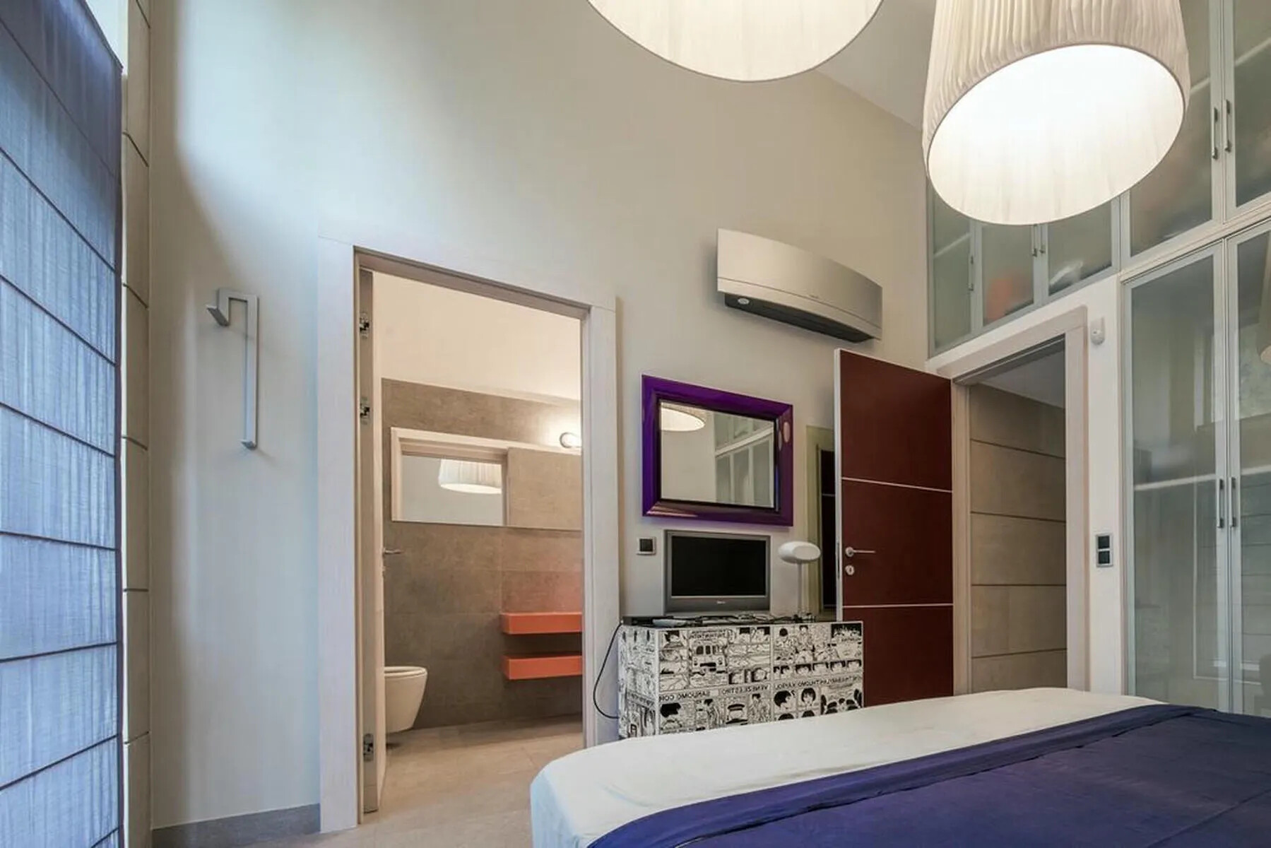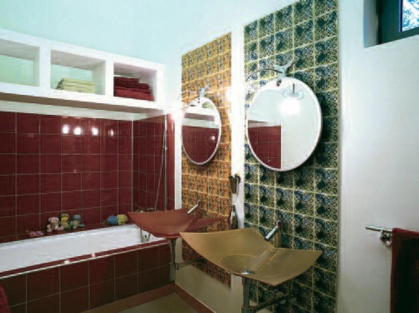 Bathroom: A colorful bathroom with a bathtub and WC, also accessible for the second bedroom