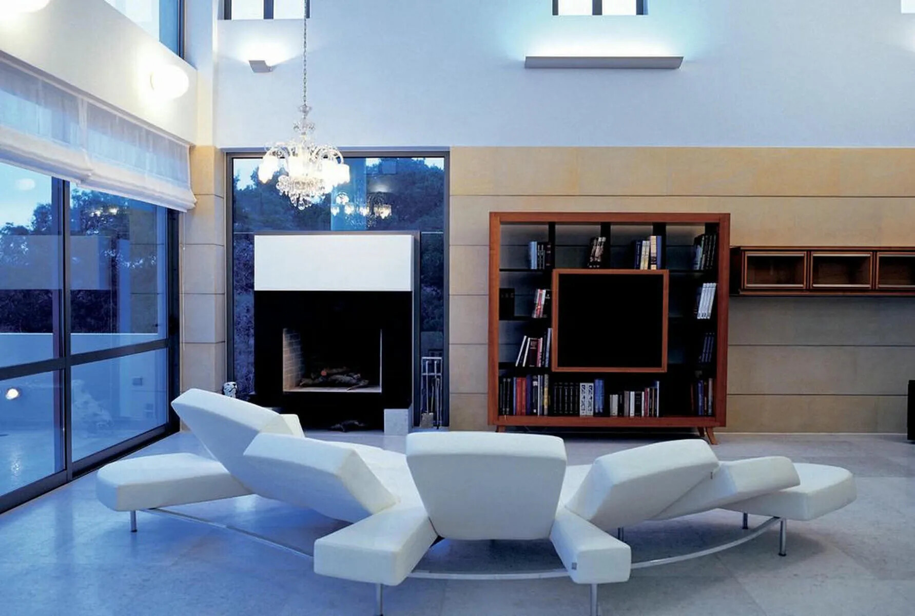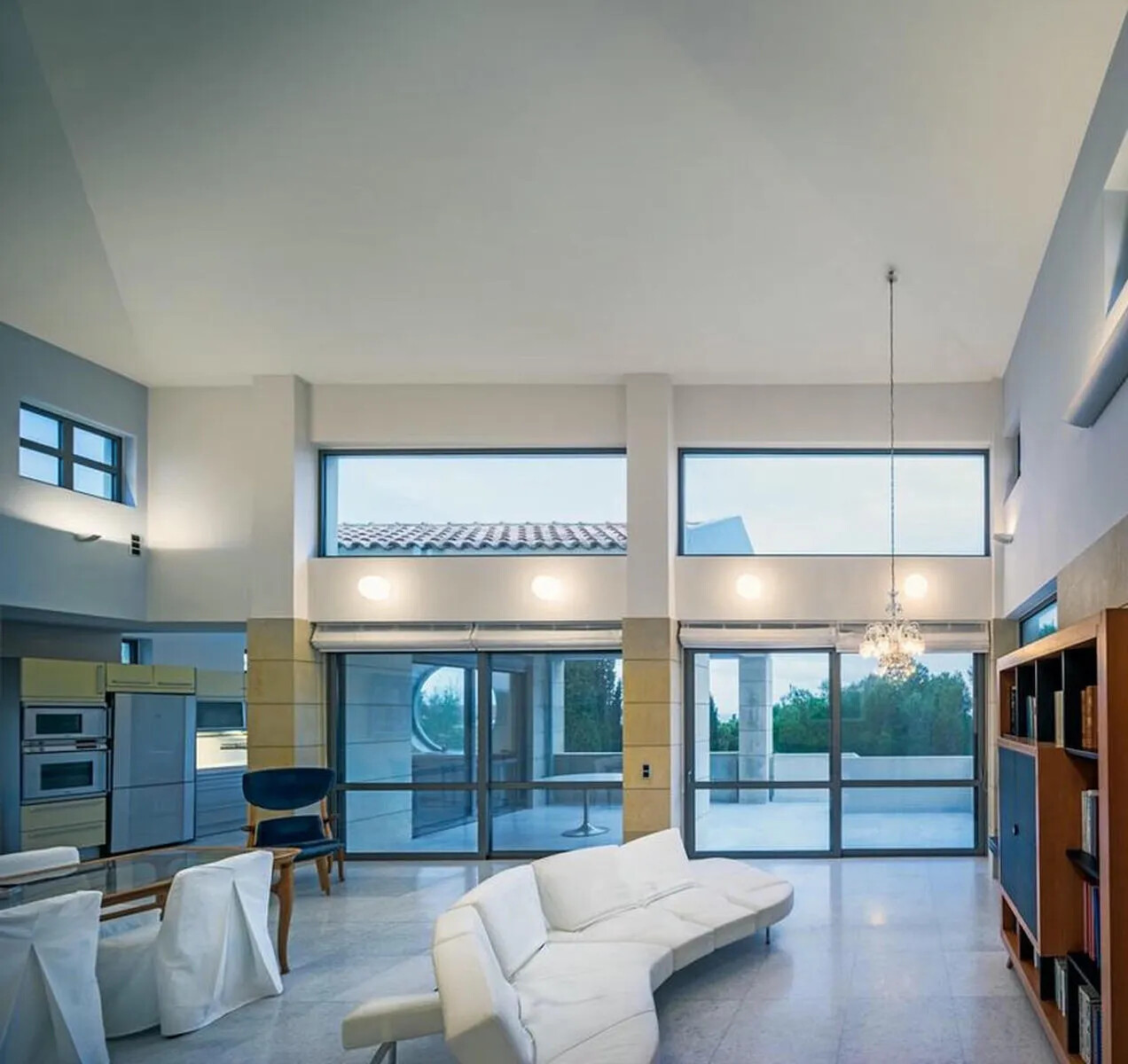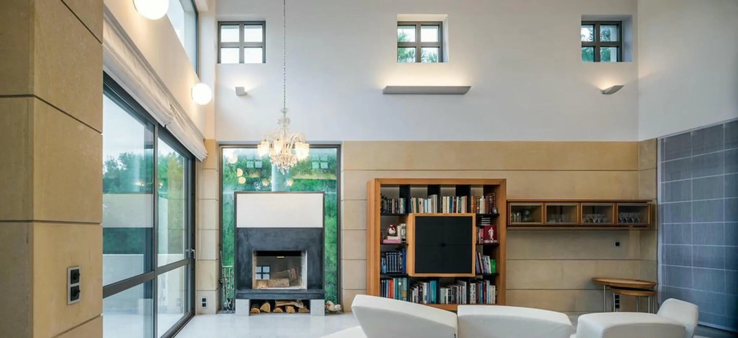 Living Area: A large library and comfortable sitting areas that lead to an outdoor dining space by the pool