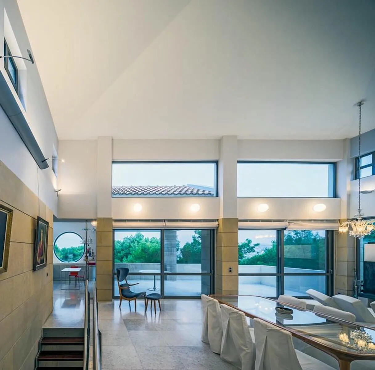 The villa boasts a unique combination of modern elegance and traditional craftsmanship, with exposed marble walls blending seamlessly with natural wood finishes. The villa is furnished with high-end Italian furniture and features top-of-the-line lighting fixtures, creating a post-modern yet contemporary ambiance. Each space within the home is designed to maximize natural light and provide an atmosphere of luxury and comfort.