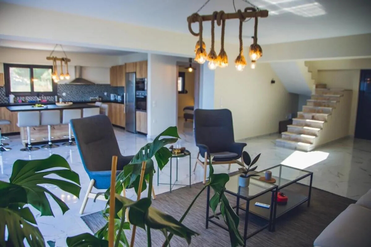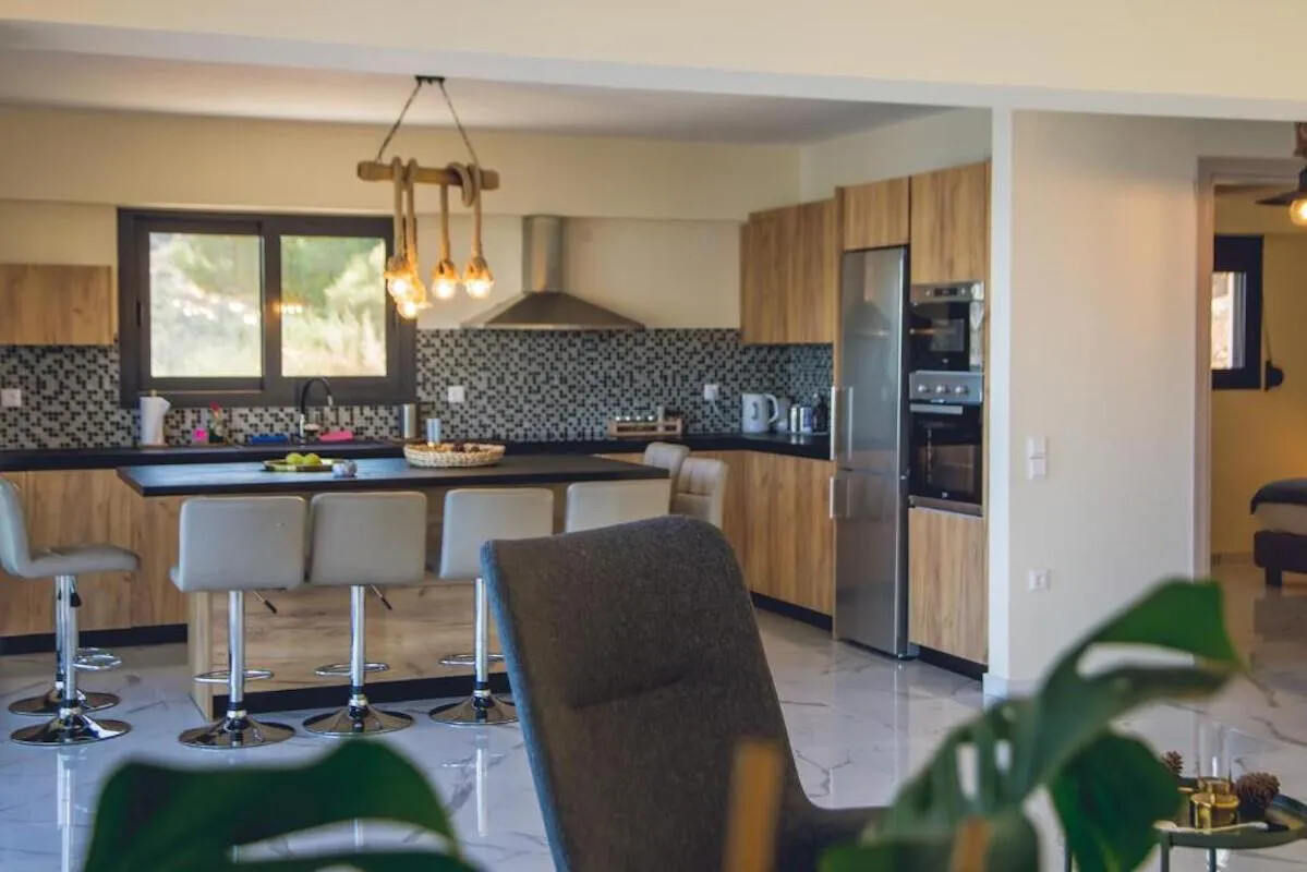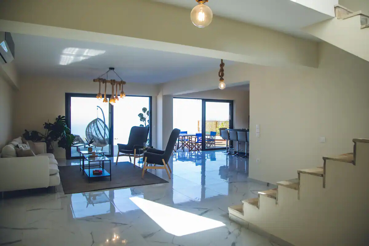 This newly built villa offers a premium location with breathtaking views of the Ionian Sea and mesmerizing sunsets. The property is designed to promote relaxation and tranquility, nestled on the slope of an imposing hill.