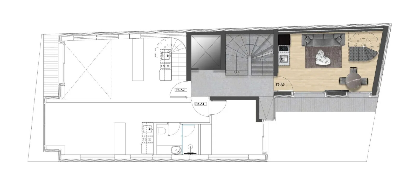 The project is in one of the most up and coming and lively suburbs, very close to the center of Athens. It is practically a few minutes walk from major cultural and artistic spots and offers a wide variety of trendy cafes, bars and shops.