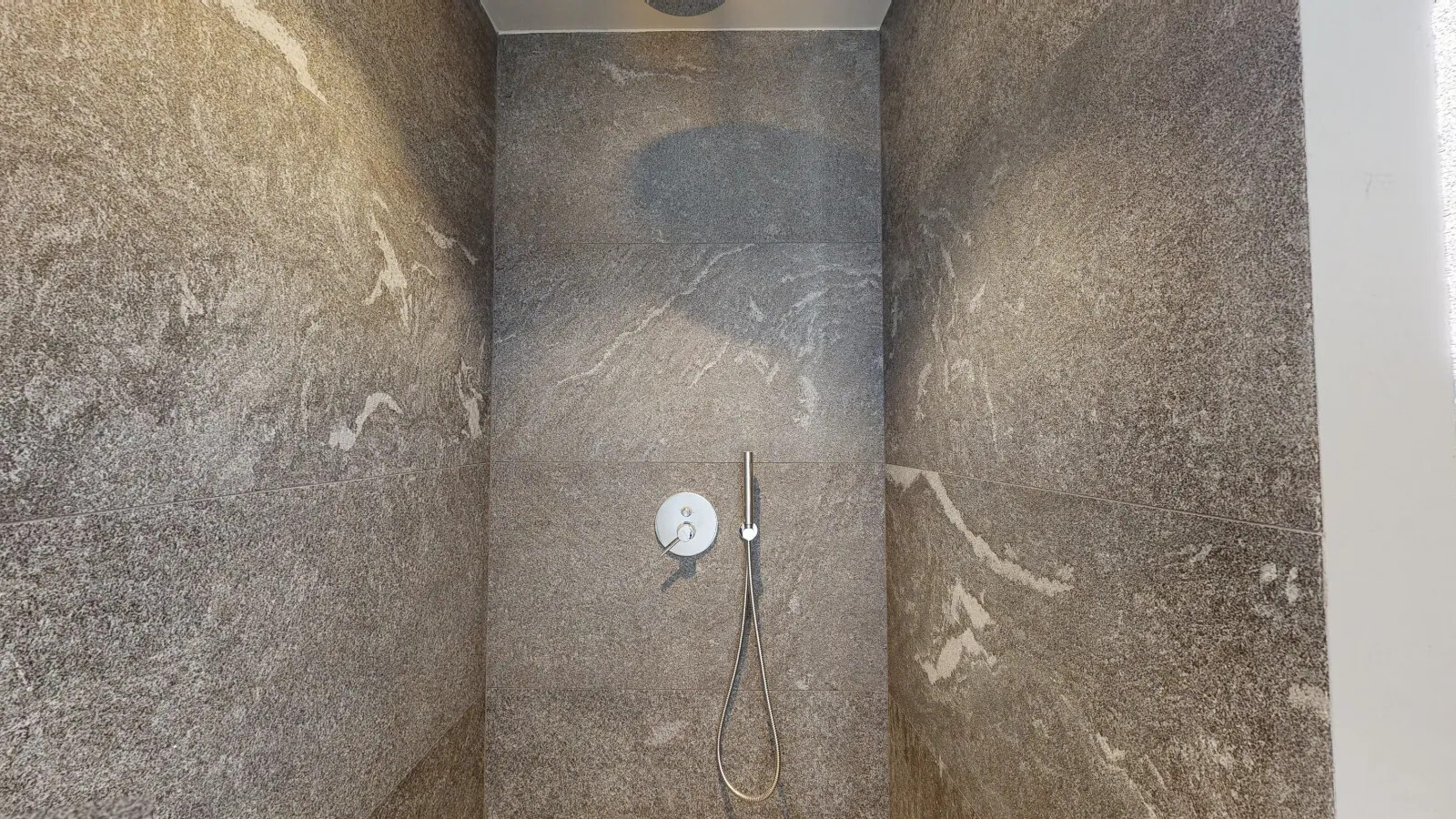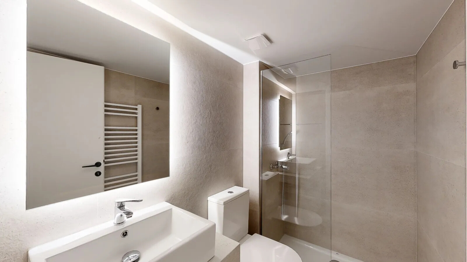 The first level features a spacious living and dining area, a fully equipped kitchen with balcony access, a guest WC, and a meticulously landscaped garden hosting a 20 sqm overflow swimming pool. Privacy is ensured with fencing and a pergola. Additionally, this level includes two parking spaces and a private pedestrian entrance to the garden, covering an exclusive area of 115 sqm.