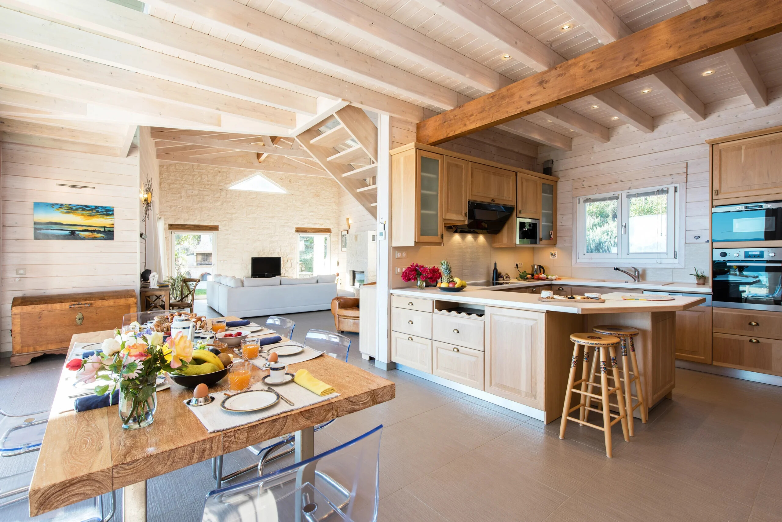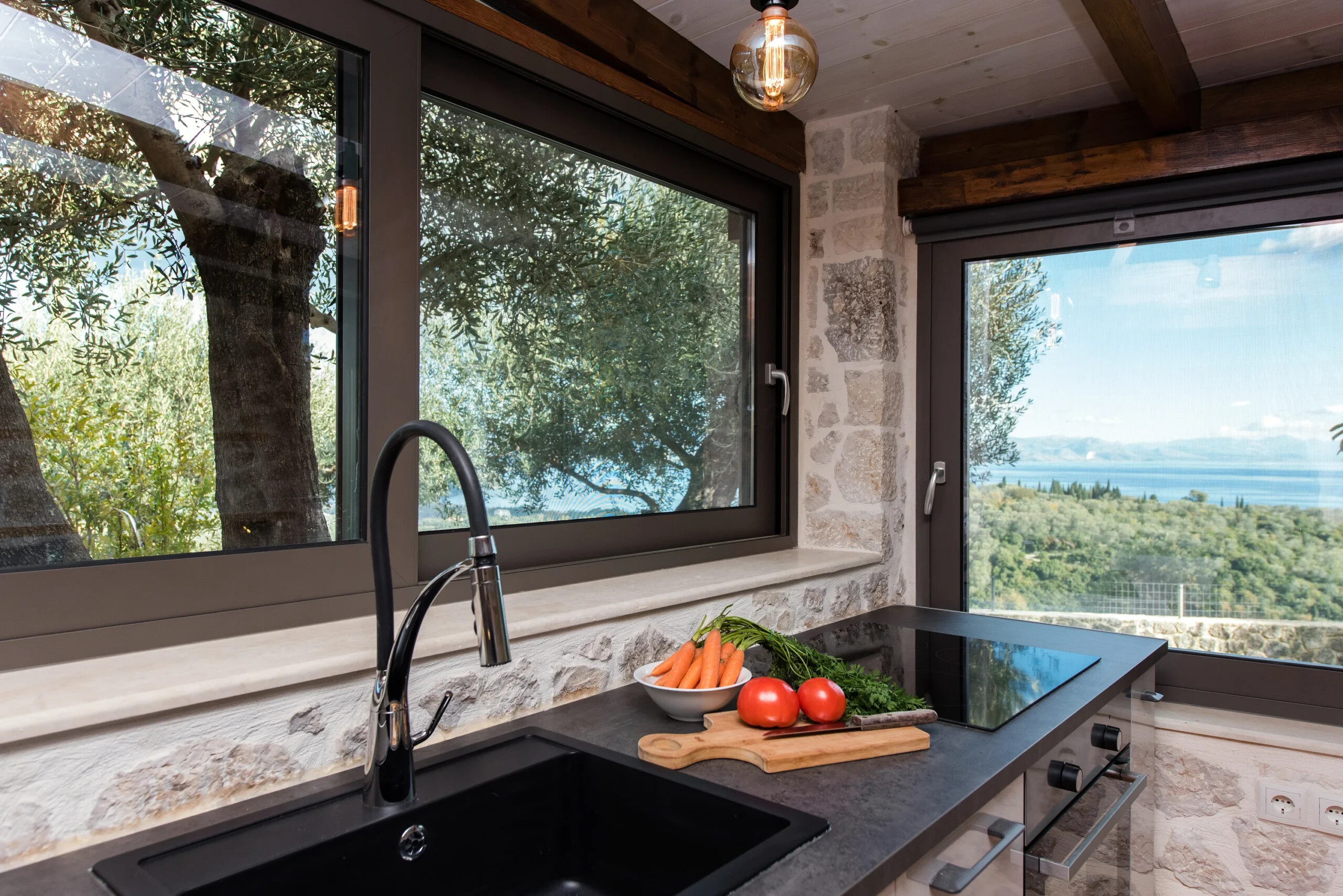 Tucked away on the property, the charming cottage offers full privacy, adorned with contemporary furnishings and necessary amenities for guests. The open-concept living area, complete with a fully equipped kitchen, features large windows framing breathtaking Ionian Sea views. The cottage’s sea-view patio is perfect for ‘al fresco’ dining.