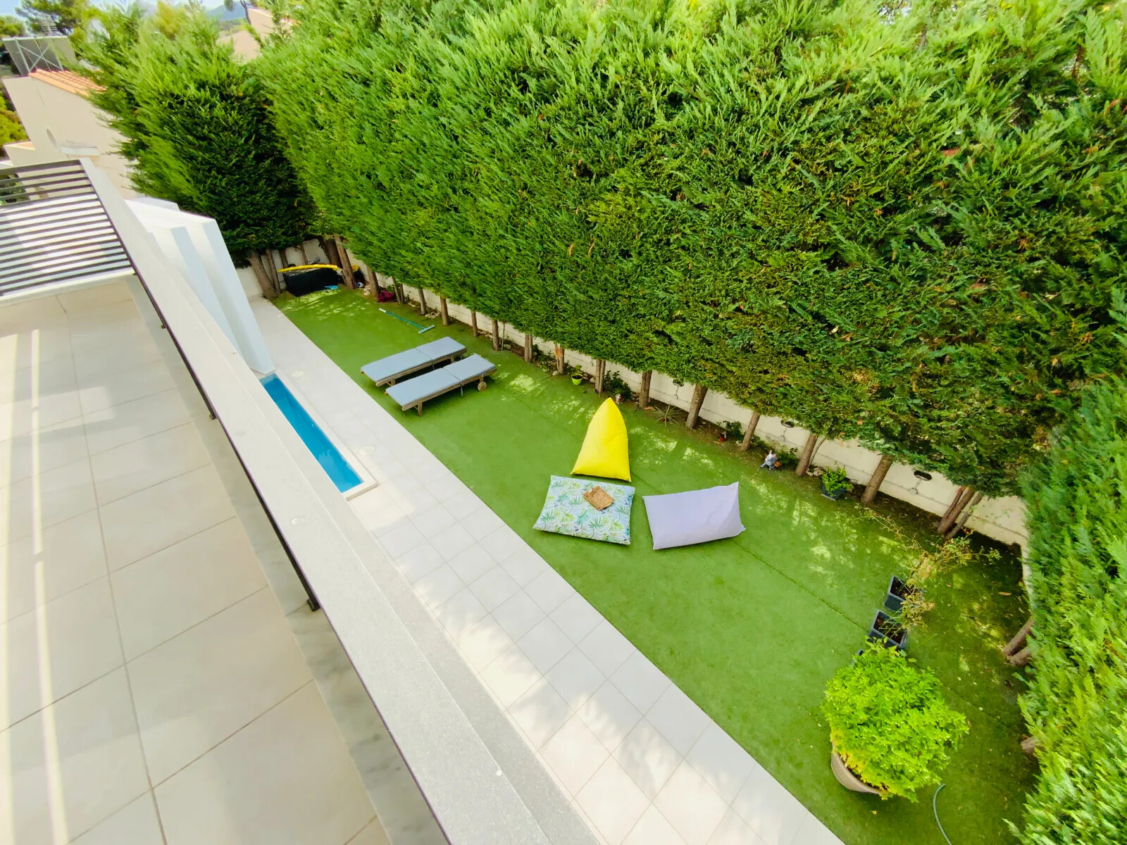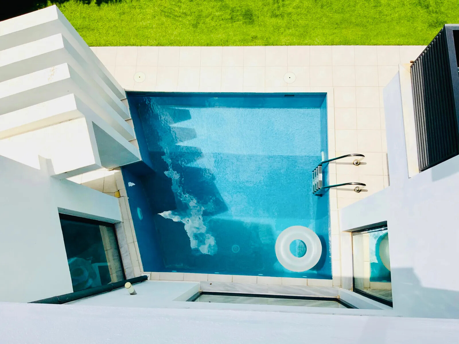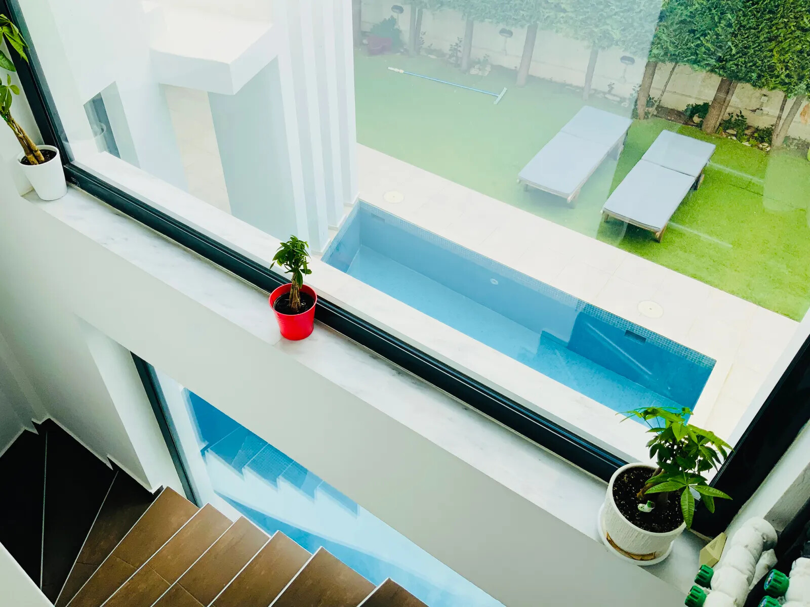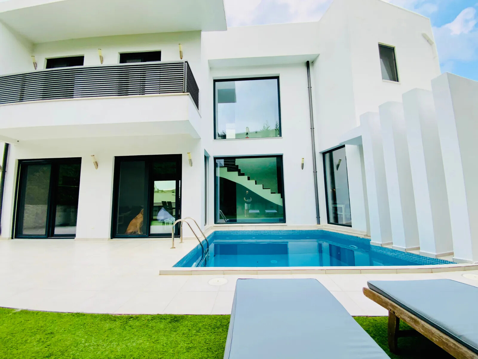 This autonomous maisonette with a private pool boasts a minimalistic architectural design and meticulous construction. Offering abundant natural light through large openings, it features unrestricted views and a garden. Conveniently located next to a bus stop and in close proximity to schools and sports facilities, this property is designed for luxurious living.