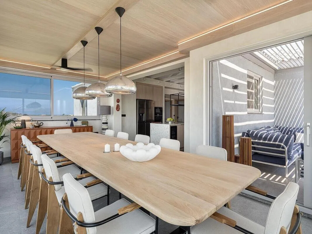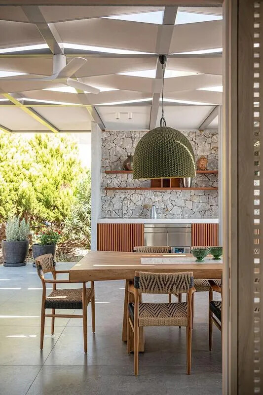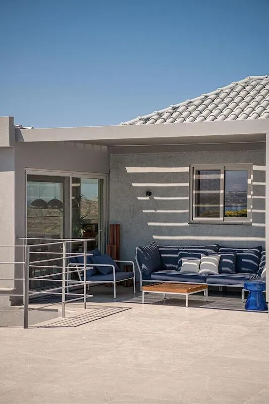 - Covered pergola with comfortable outdoor furniture, offering shade and sea breezes.