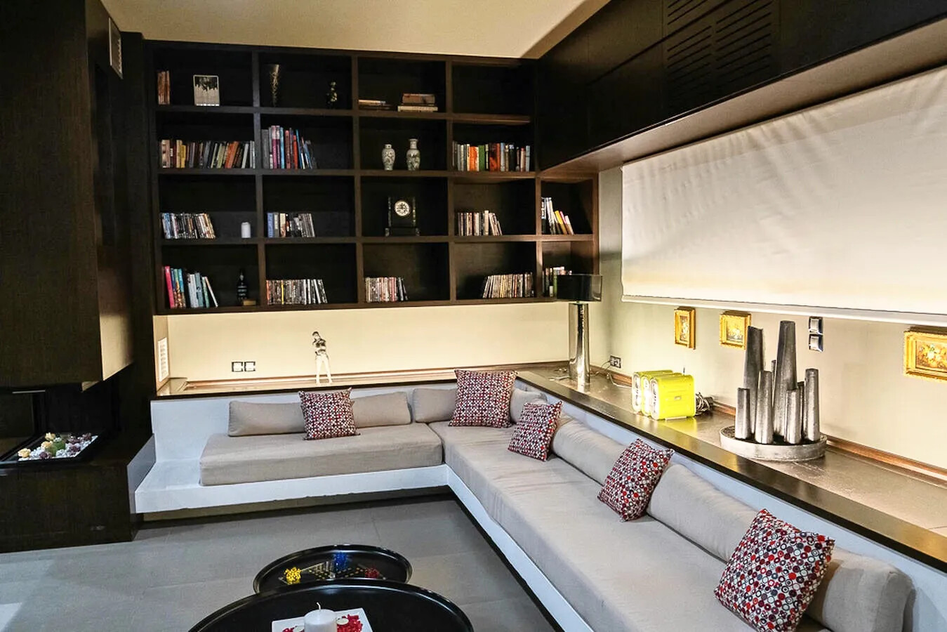 The ground floor of the villa is designed to maximize natural light, with oversized windows flooding the living and dining areas with sunlight. The spacious lounge offers comfortable seating, unlimited views of the pool and garden, and a 49” plasma TV with Netflix. An energy-efficient fireplace enhances the warm and welcoming ambiance.