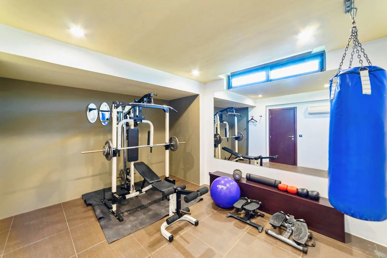 - Basement: Two additional bedrooms with two single beds each, with the option to add an extra bed upon request. This floor also includes a bathroom with shower, a gym, and a laundry room with a washing machine and ironing board.