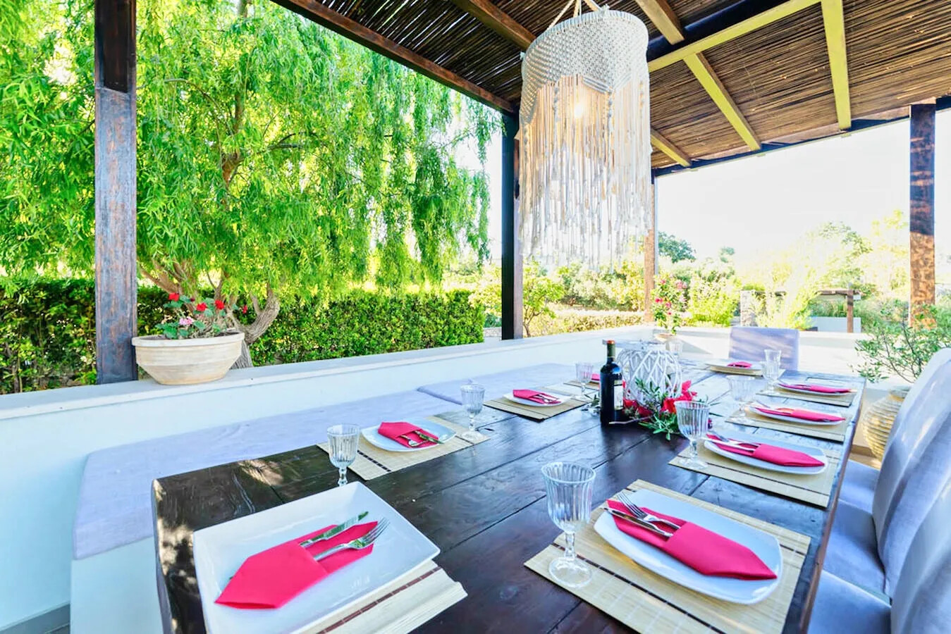 The outdoor dining area overlooks the pool and garden, featuring a barbecue setup that can comfortably serve over 10 people. It is an ideal space for hosting gatherings, making cherished memories with family and friends.