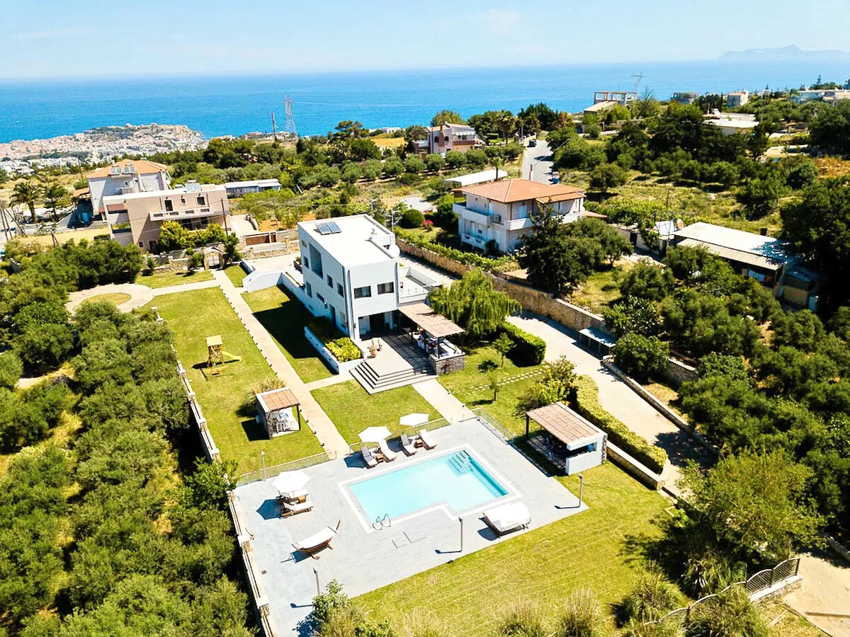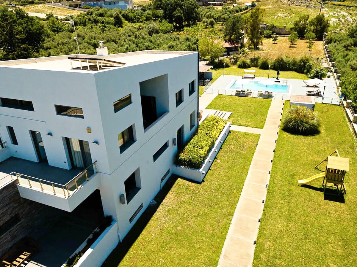 In the area of three monasteries only 4 km from the enchanting city of Rethymnon, is built one of the most impressive villas of the area and it is for sale. This luxurious property is an excellent investment for those seeking affordable luxury, whether for personal use or as a high-end rental opportunity.