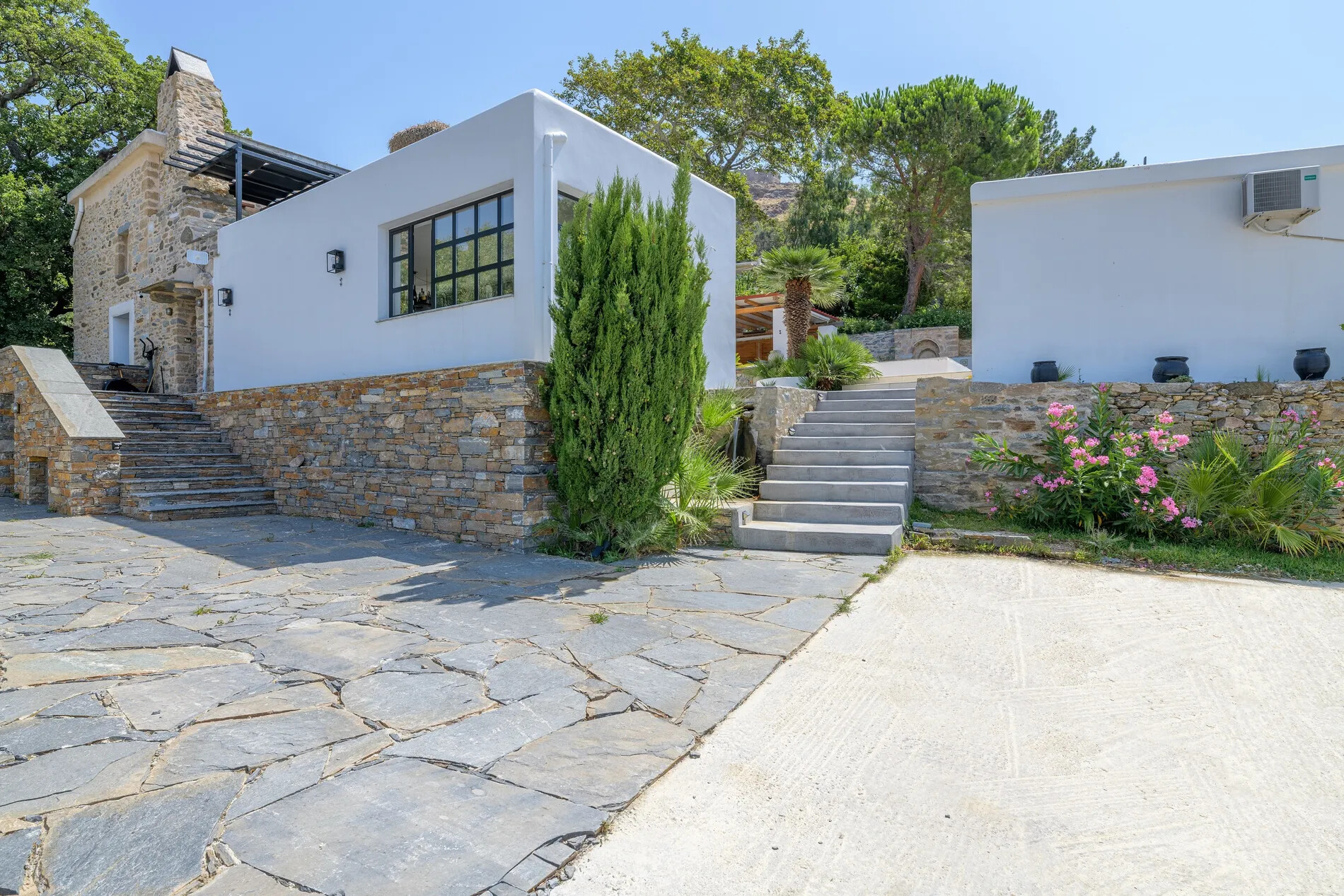 Additionally, the property boasts two independent guesthouses, each comprising two bedrooms and two bathrooms, ensuring that your guests enjoy the same level of comfort and sophistication.