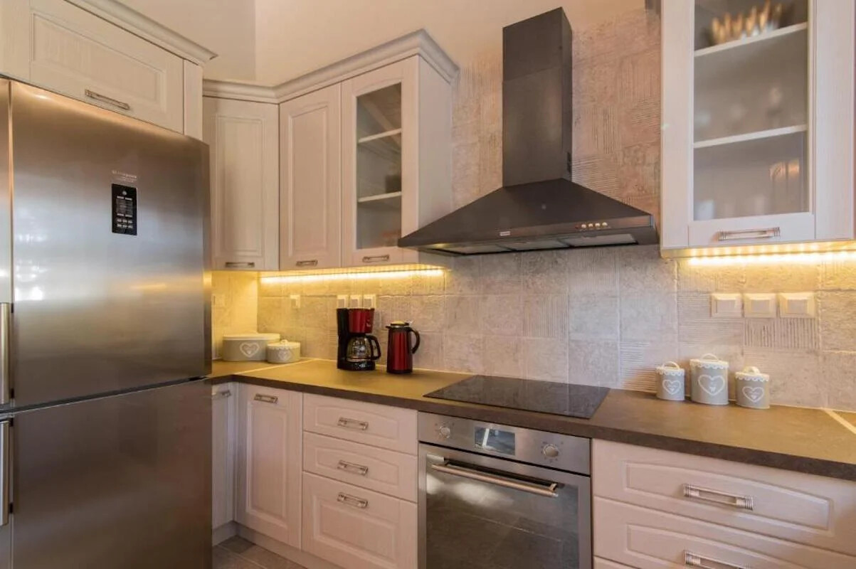 Villa spans 120 sqm and accommodates 2 to 6 persons. The living spaces include a spacious living room, dining area, fully equipped kitchen, breakfast bar, and a fireplace. The villa is equipped with independent heating and air conditioning, ensuring comfort in every season.