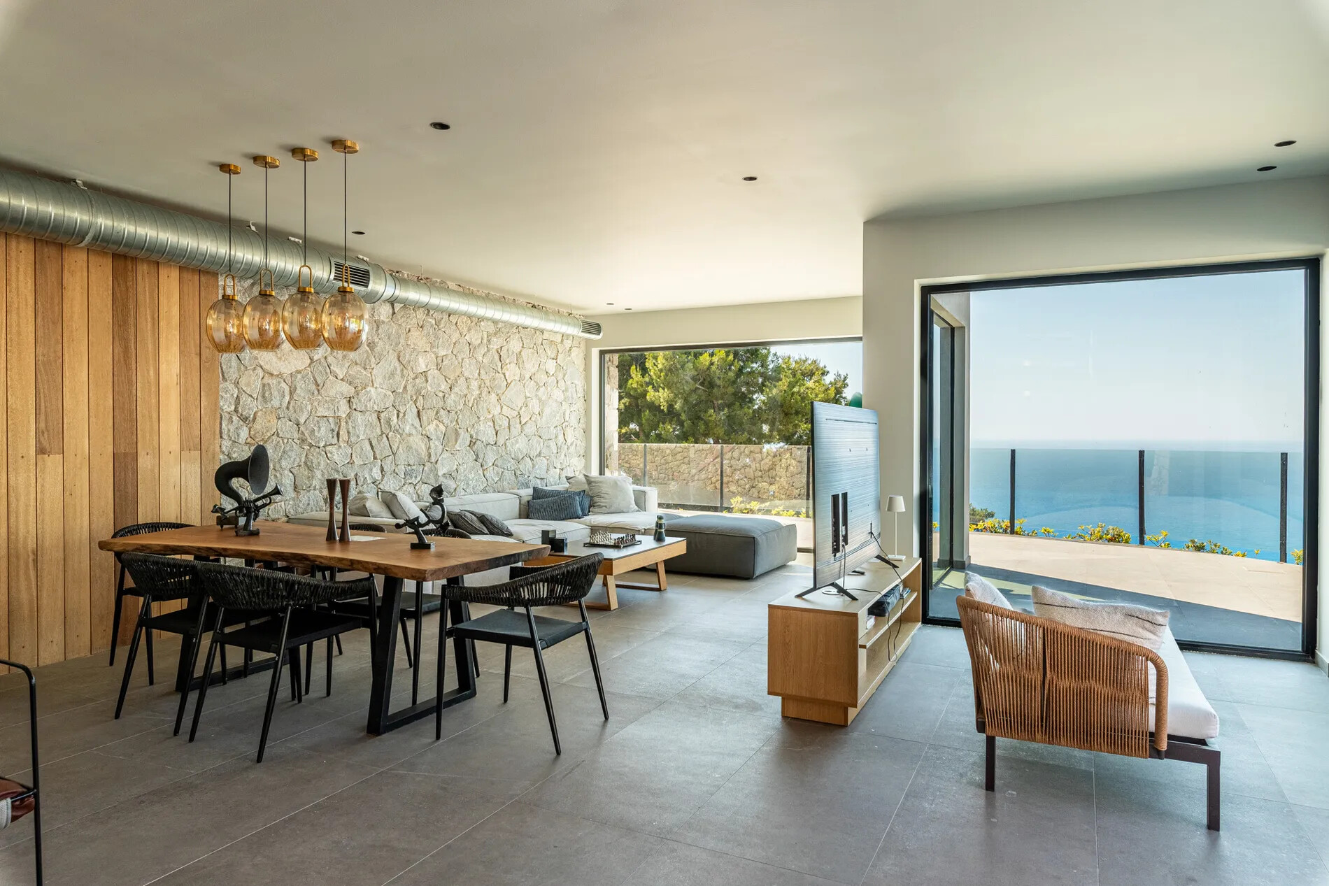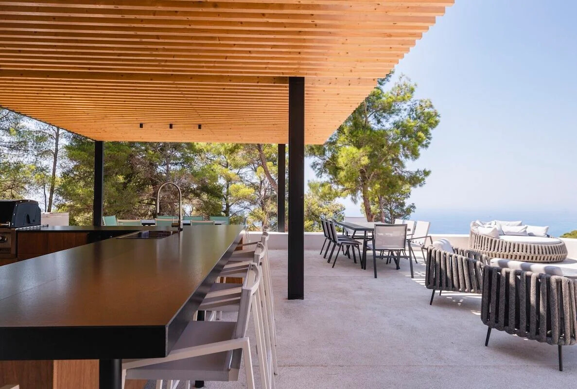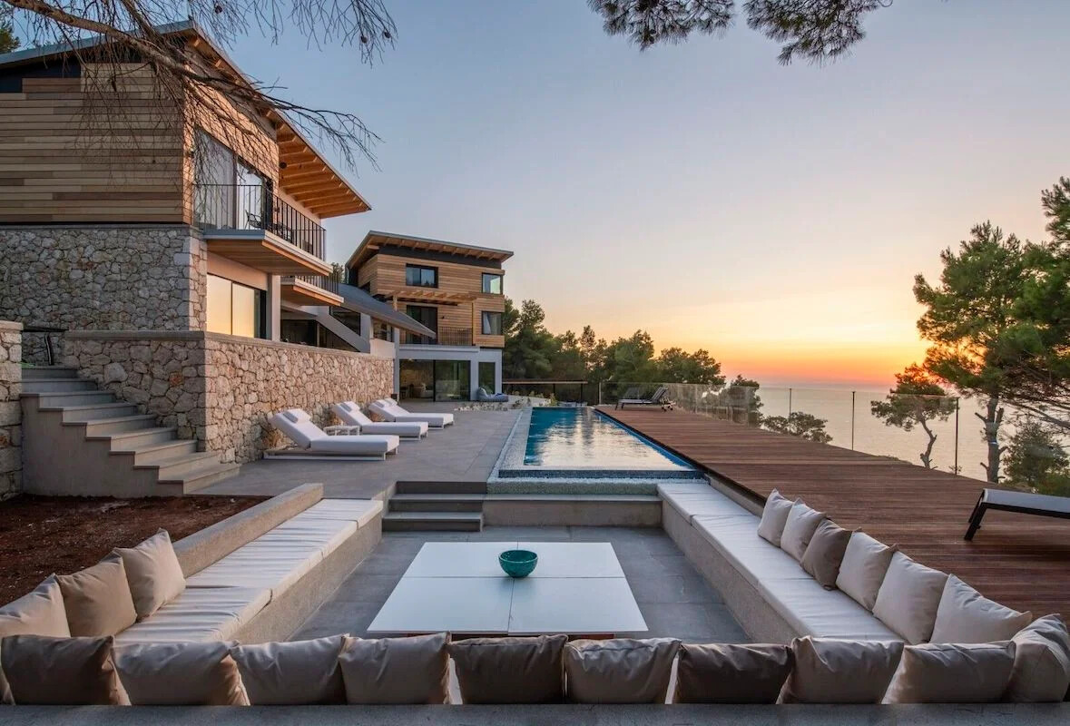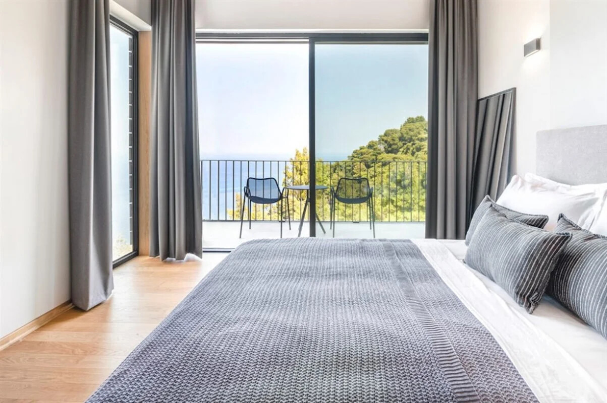 Nestled within a lush green woodland in South-Western Lefkada, this property enjoys a commanding position with unparalleled natural beauty. Its contemporary design harmoniously blends with the dramatic surroundings, using natural materials like wood and stone.