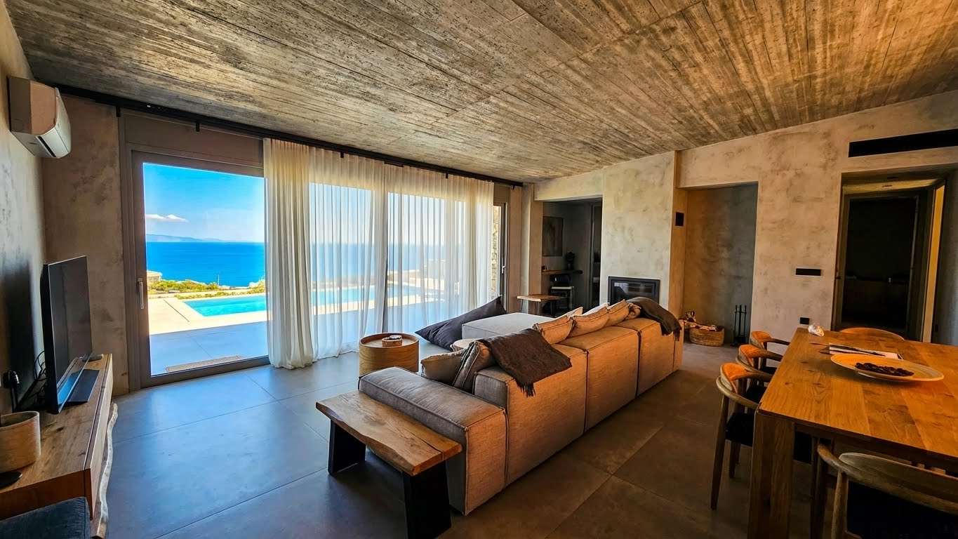 Built in 2024 with an A+ energy rating, the home is positioned just 850 meters from the sea, offering pristine views of the Aegean and the perfect balance between privacy and convenience.