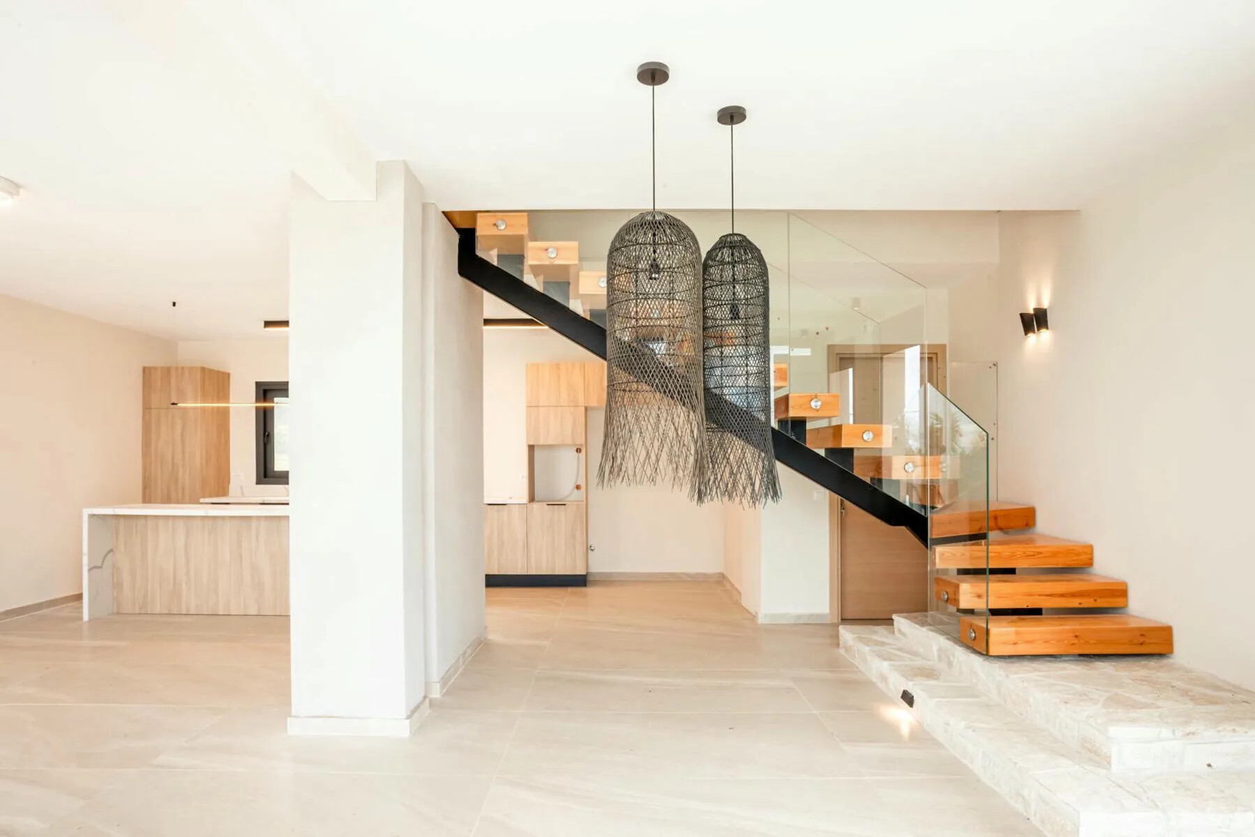 The open-plan entrance level features:
