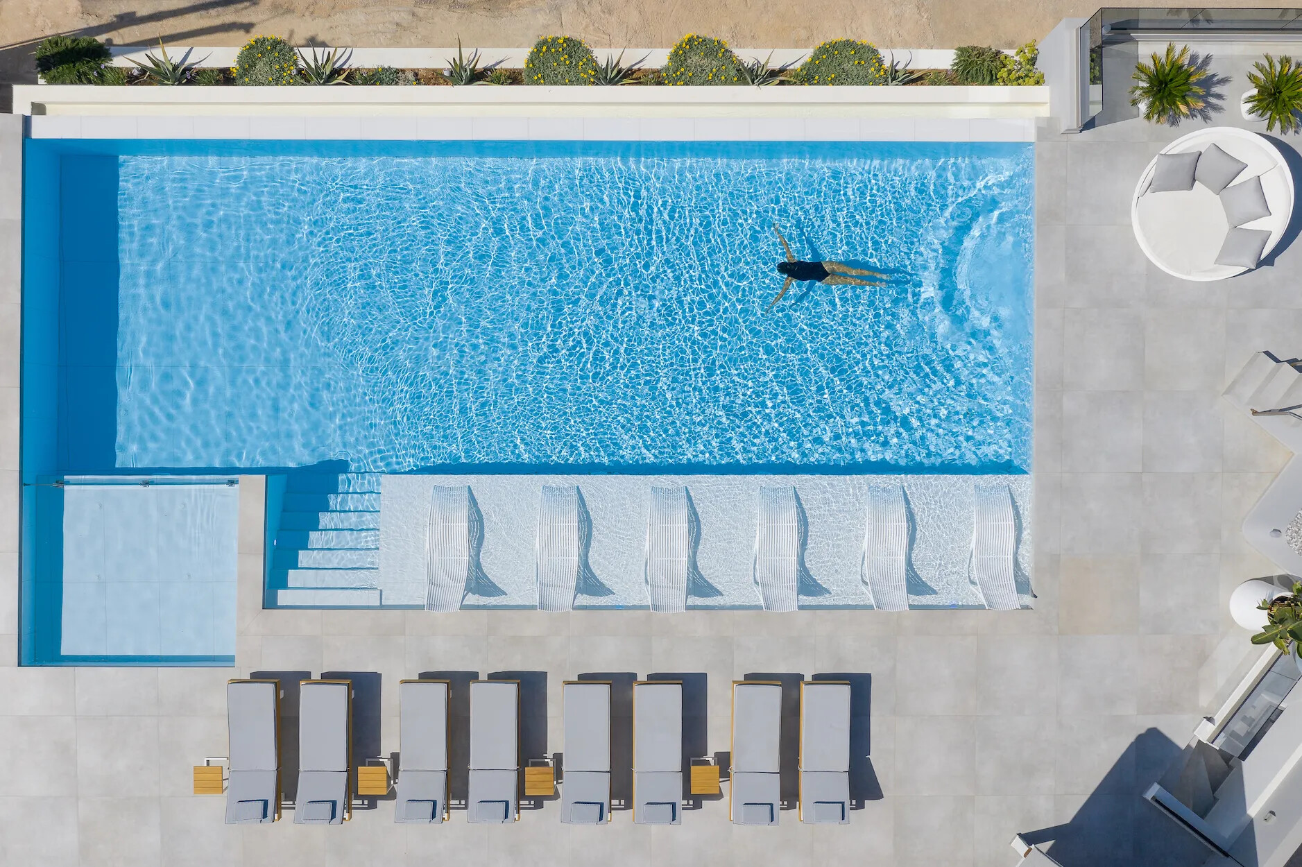Indoor Heated Pool & Vendom Swim-Up Loungers (made from recycled Mediterranean plastics)