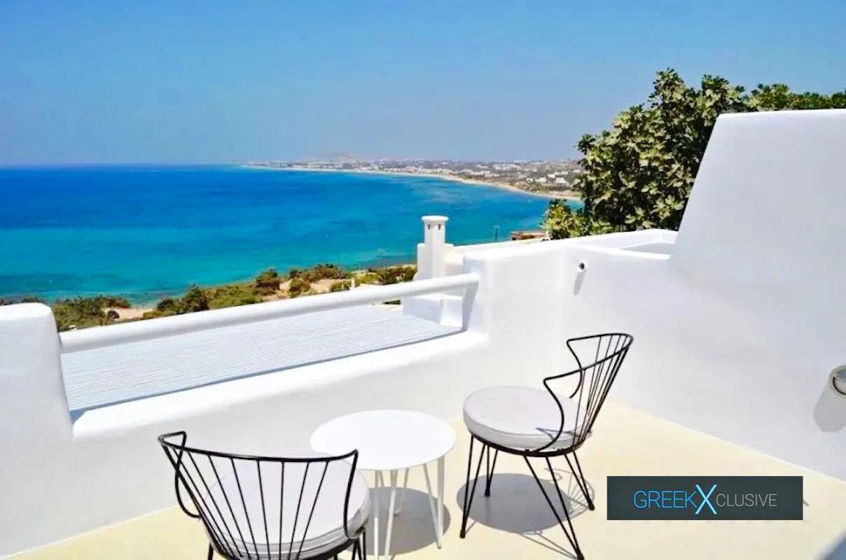 Nestled in the captivating landscape of Naxos, this luxury detached house for sale in Naxos is situated by the seaside and within walking distance of the pristine, white-sand beaches of Mikri Vigla and Plaka. A wide selection of charming restaurants and coffee shops are also nearby, offering a perfect blend of relaxation and convenience.