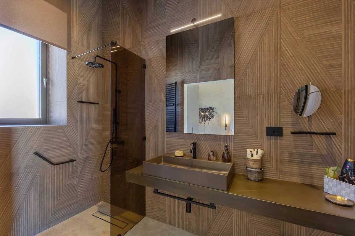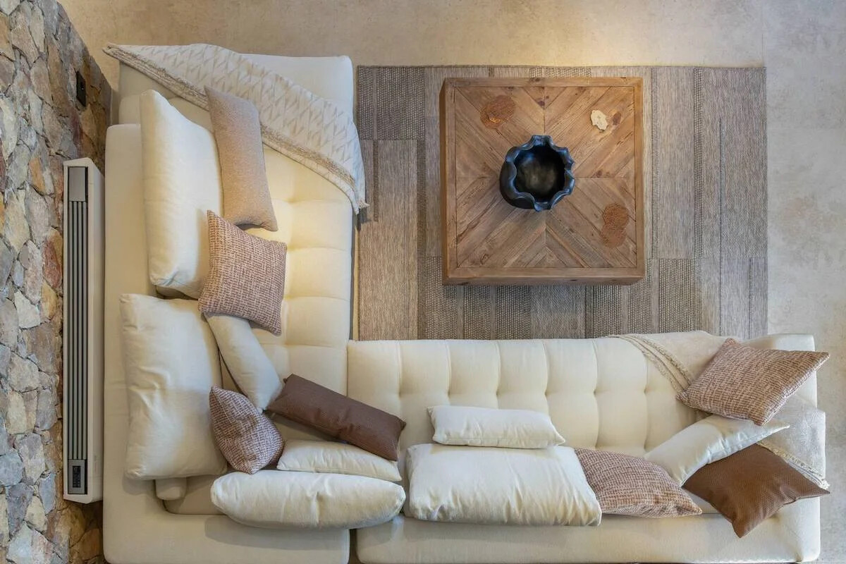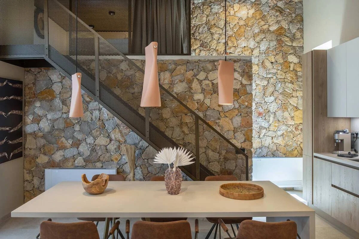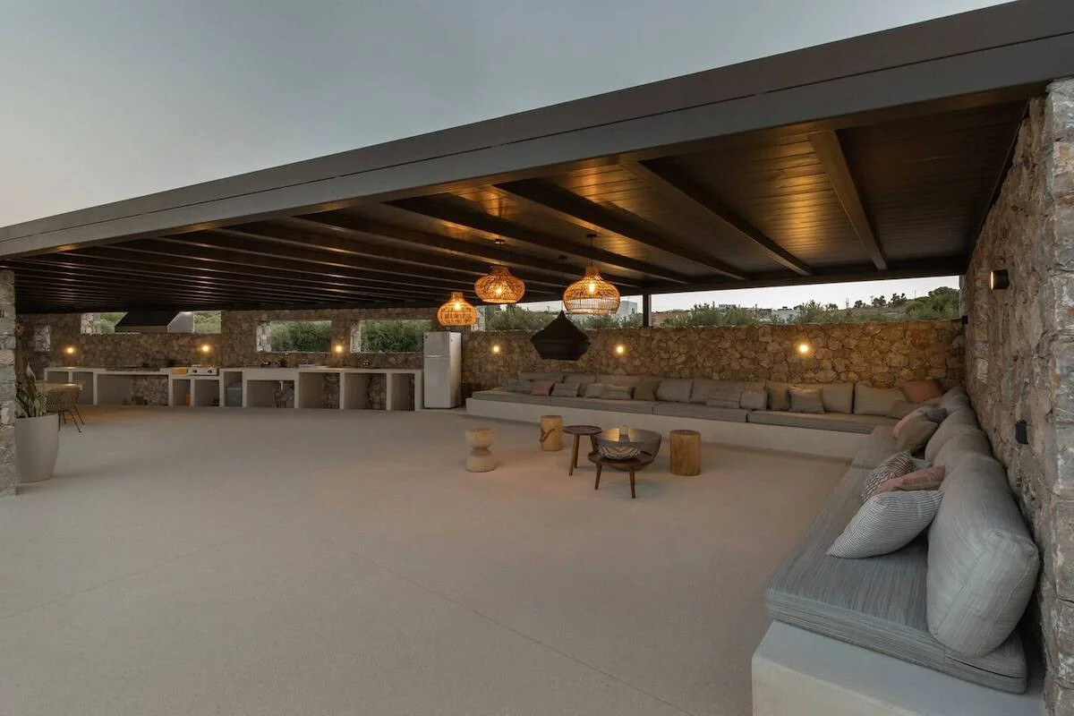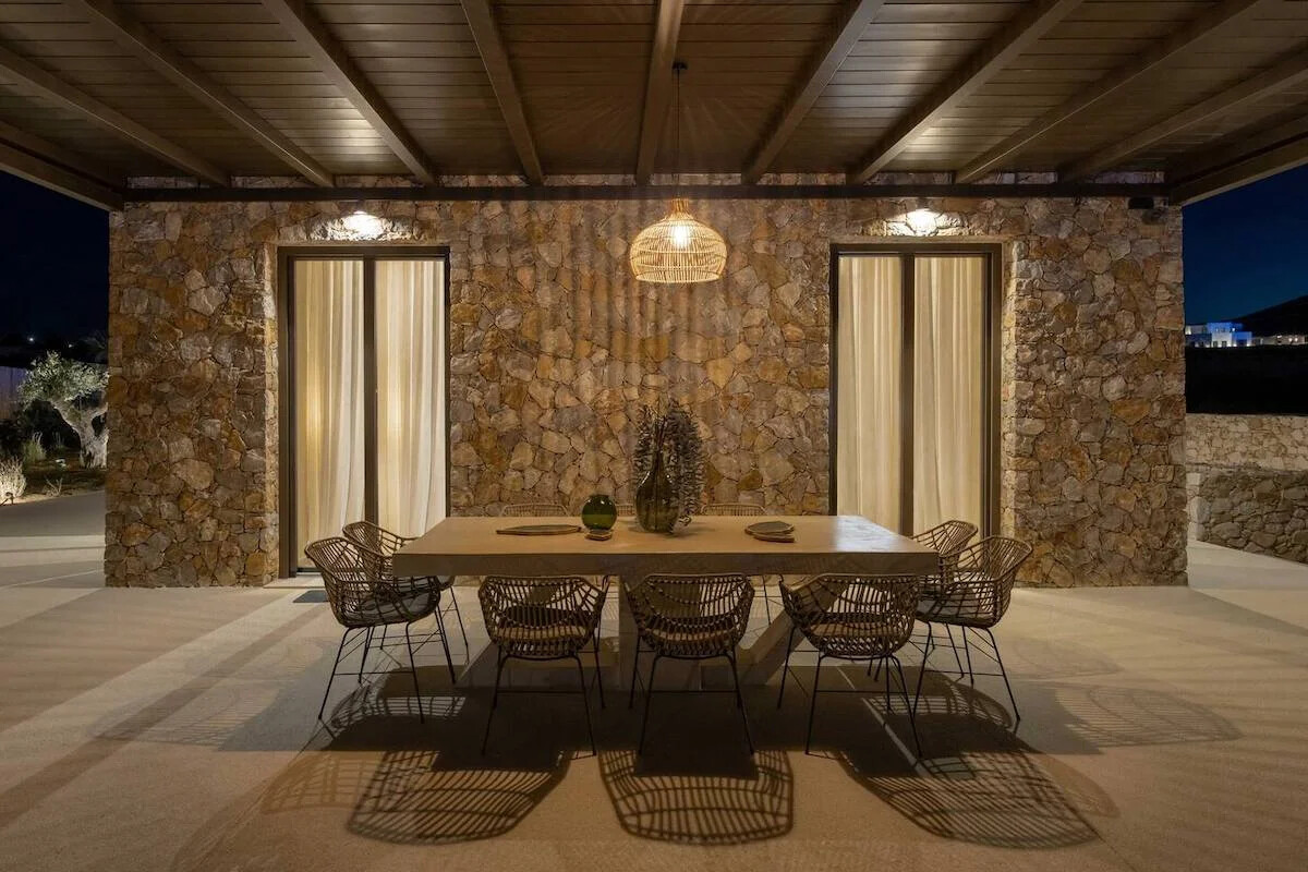 Situated on a sprawling 4,060 square meters of prime Golden Beach real estate, each villa offers a generous 220 square meters of indoor living space. Our sustainable minimalism and luxurious Eco chic Style bioclimatic villas are meticulously constructed from Paros’ native rocks within a 5-acre estate. Here, tradition seamlessly marries modern high-end architecture.