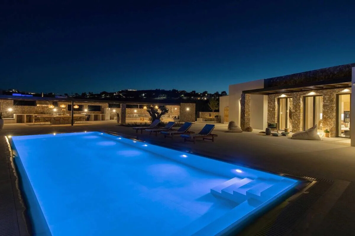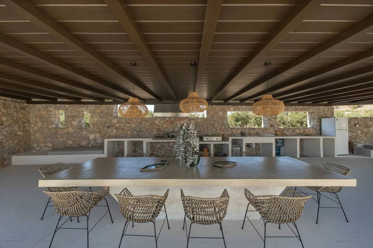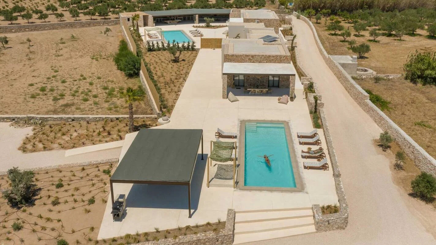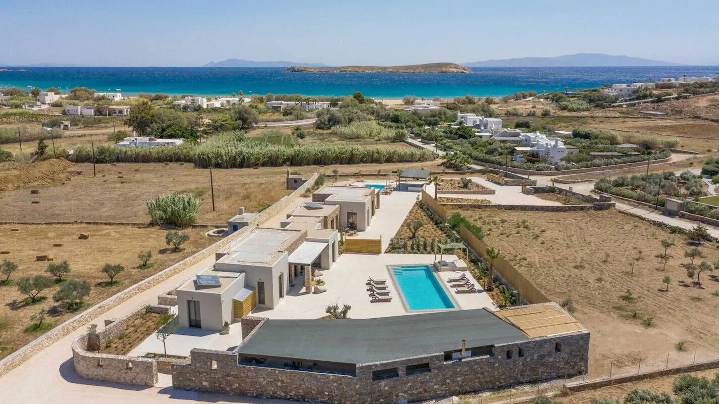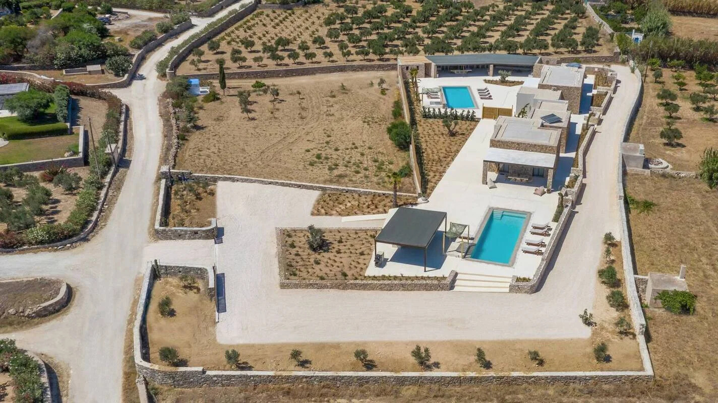 Embrace sustainable living in harmony with nature at our newly unveiled Villas project in Paros. Nestled atop the stunning Chrysi Akti beach, amidst a lush landscape of evergreen beauty, this two-villa complex offers an idyllic retreat. Whether you seek a spacious haven for up to 17 guests under one roof or prefer the privacy of two exquisitely camouflaged private homes accommodating 6 and 11 guests respectively, our property boasts 8 bedrooms, 6 bathrooms, 2 inviting living and dining areas, and well-appointed kitchens. Additionally, two outdoor pergolas provide kitchenettes, living spaces, and al fresco bathrooms, ensuring a 5-star experience complete with exceptional facilities and resort-style comforts.